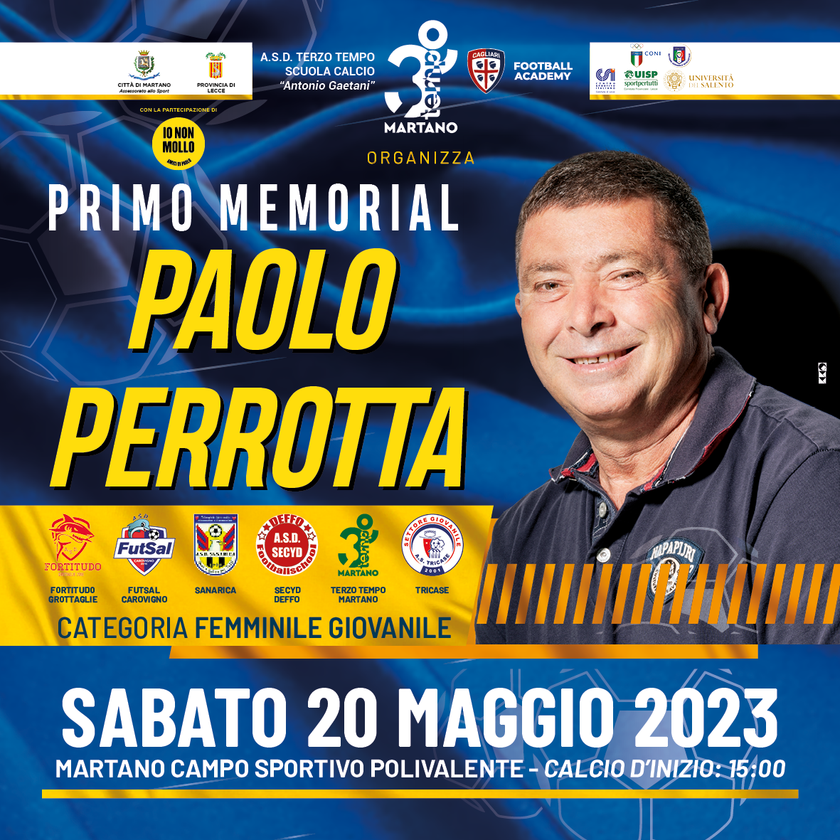 Si svolgerà a Martano, il 20 Maggio 2023, presso il Campo Sportivo Polivalente Comunale il 1° Memorial “Paolo Perrotta”.