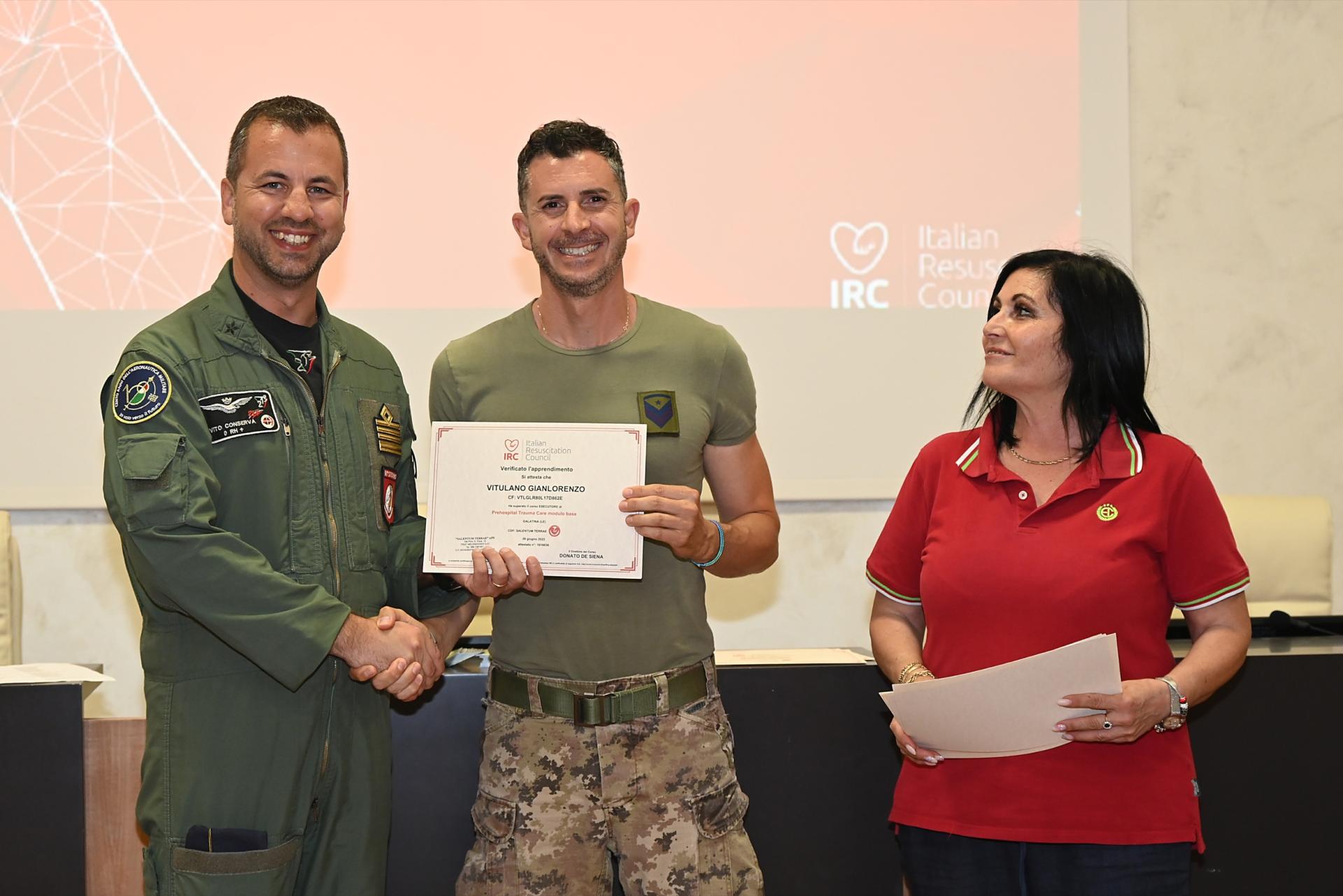 L’evento formativo si è concluso nel pomeriggio in Aula Magna con la consegna degli attestati da parte del Colonnello Vito Conserva, Comandante del Reparto, che ha voluto ringraziare il Ten.Col Gaetano Ingrosso, responsabile dell’Infermeria di Corpo, e tutti gli attori esterni che hanno permesso di realizzare quest’attività.