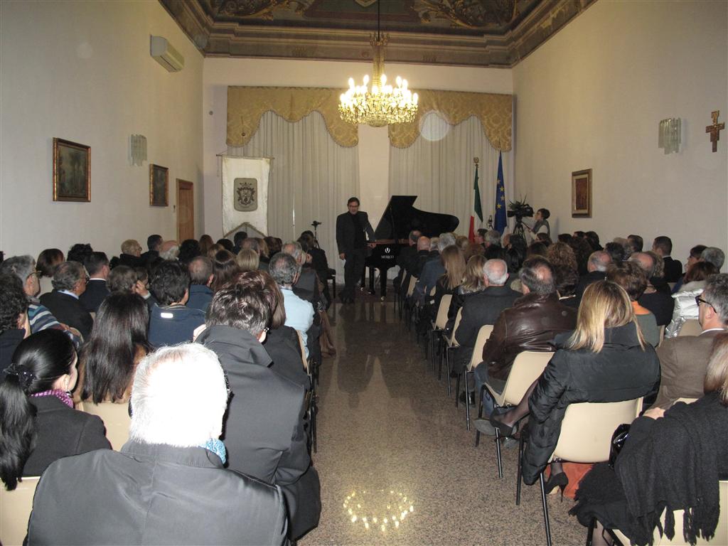 Galatina - Per il secondo anno consecutivo il Concerto di Capodanno si è tenuto nella bella Sala del Sindaco, a Palazzo Orsini. L’Amministrazione Comunale, in collaborazione con l’Associazione musicale “I Concerti del Chiostro”, domenica 29 dicembre ha offerto alla cittadinanza, come augurio per un felice anno nuovo, il concerto di eccezionale valore artistico del pianista Leonel Morales. Dopo un breve saluto del sindaco Cosimo Montagna ed una esauriente presentazione del maestro Luigi Fracasso, Morales ha dato inizio al concerto.