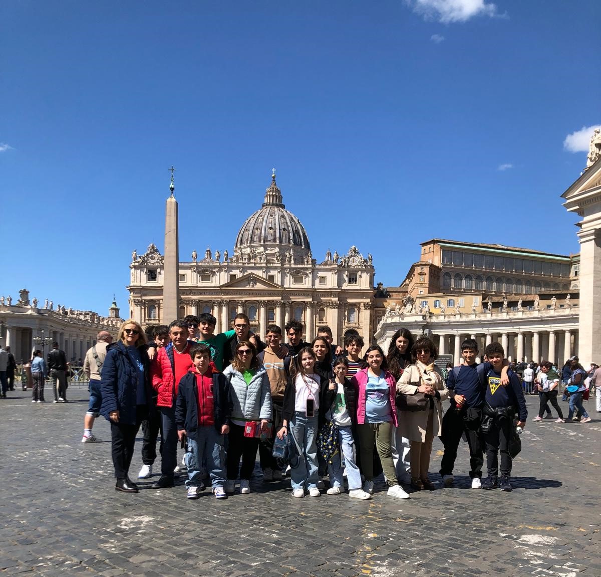 I ragazzi e le ragazze del Polo 3 hanno incontrato Papa Francesco venerdì 19 aprile 2024 nell’Aula Paolo VI della Città del Vaticano nel corso di un grande evento di educazione civica inserito nel Programma “Trasformiamo il Futuro. Per la pace. Con la cura”. Ha consentito tutto ciò il Comune di Galatina aderendo al Patto di Assisi e al Coordinamento Nazionale per gli Enti Locali per la Pace e i Diritti Umani che ha organizzato la manifestazione. Un viaggio reale, da Galatina a Roma in 26 ore, e un profondo viaggio interiore che ha coinvolto tanti ragazzi e ragazze delle classi quinte della scuola primaria e delle terze medie della scuola secondaria di I grado “Giovanni XXIII”, insieme a tante altre scuola d’Italia e ad alcune scuole di Galatina al fine di condividere con Papa Francesco i sogni e le idee, le preoccupazioni e le proposte dei nostri ragazzi e ragazze per la costruzione di una vita e di un mondo migliore per tutti e tutte. Il 19 aprile abbiamo vissuto, con grande gioia ed emozione, l’incontro con Papa Francesco, un uomo che si sta prendendo cura di noi tutti, un uomo che più di ogni altro si è fatto difensore e portavoce del bisogno di pace, dignità e diritti di tutti, credenti e non credenti, dell’umanità e del pianeta, un uomo che crede nei giovani e che dialogando con loro li ha definiti COSTRUTTORI DI PACE E DI UN FUTURO MIGLIORE per tutte e tutti.