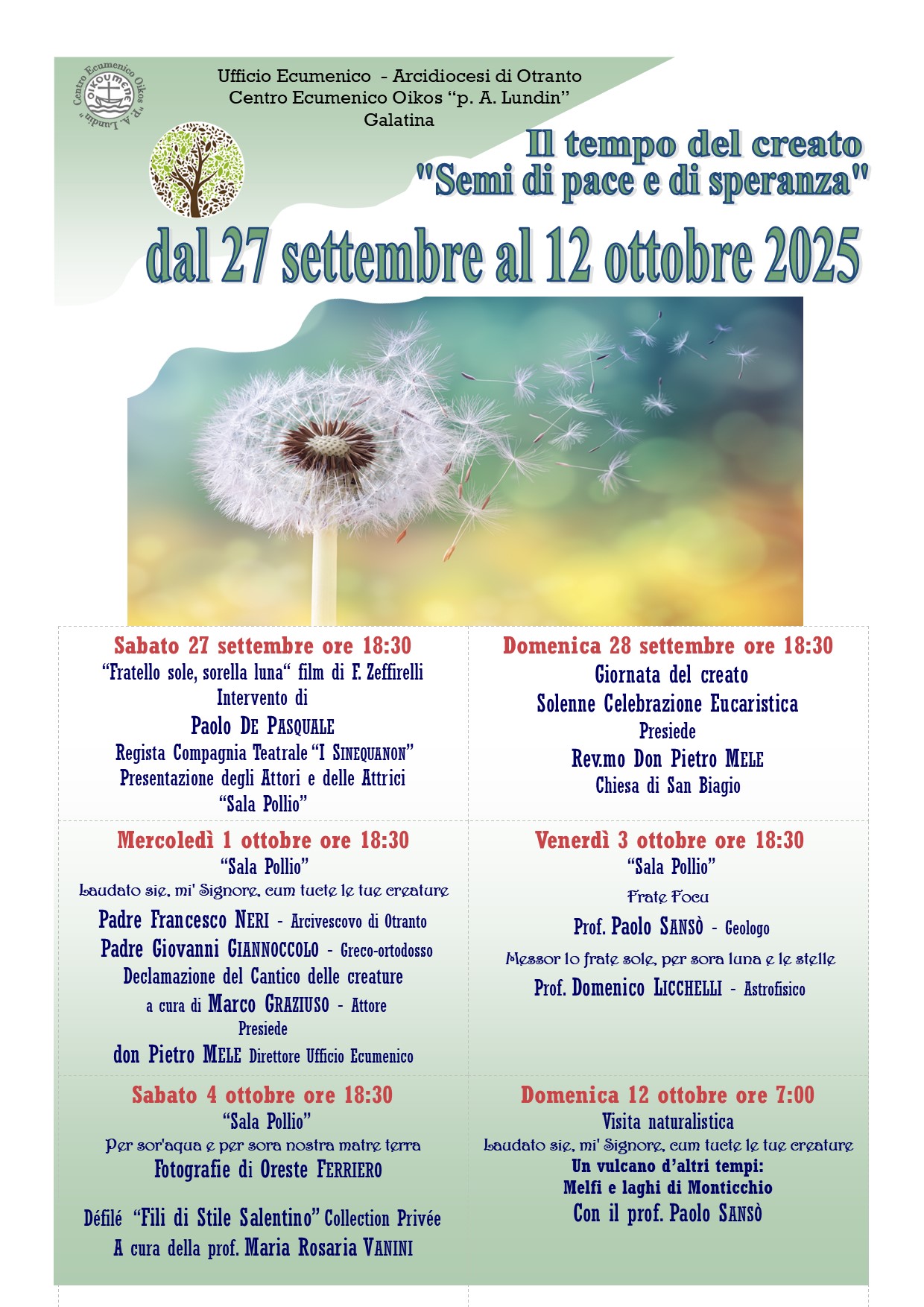 Le proposte del Centro Ecumenico Oikos di Galatina dal 27 settembre al 12 ottobre 2025