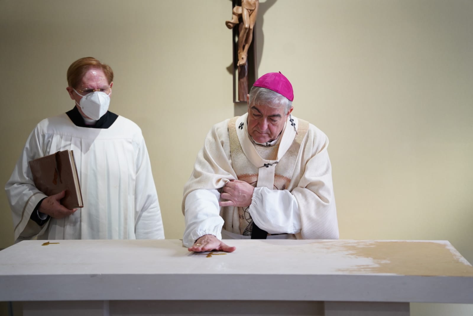 Si è tenuta ieri mattina presso il neo padiglione Dipartimento Emergenza e Acuti di Lecce la cerimonia di consacrazione e benedizione della Cappella della struttura, dedicata alla Beata Vergine della Medaglia Miracolosa. Al rito, presieduto da S.E. Monsignor Michele Seccia e officiato dal Cappellano del Presidio Ospedaliero, Don Gianni Mattia, erano presenti il Commissario straordinario di ASL Lecce, avvocato Stefano Rossi e il Direttore Sanitario del nosocomio salentino, dottor Carlo Sabino Leo. ‟Dopo la realizzazione del Dea si è pensato di creare uno spazio per incontrare Gesù, un luogo di preghiera e di ristoro spirituale, in cui il malato, il medico, l’infermiere o qualsiasi operatore incontra sé stesso nell’Amore e si fa Amore per chi vive nel dolore. La benedizione della Cappella del Dea, avviene in una data emblematica; il 6 dicembre, infatti, si festeggia san Nicola, conosciuto come benefattore e protettore soprattutto dei bambini. E questa data è emblematica per lo scopo di questa Cappella e per ciò che porterà molti a raccogliersi in essa. Gli ospedali sono luoghi dove il silenzio sovrasta i rumori, le urla e il dolore; ma quel silenzio è come un martello che ci batte nella testa senza darci riparo e riposo. Un silenzio nel quale ci perdiamo e ci sentiamo smarriti. La cappella vuole essere una dimora, lì dove non ci sentiamo al sicuro da nessuna parte, lì dove le nostre preghiere ci sembrano sbattute dalle intemperie. In essa il silenzio ritrova la sua dimensione di dialogo con Dio e con sé stessi, un luogo di pace dove affidare al Padre il nostro bene più profondo e a lui affidarci. La beata Vergine della Medaglia miracolosa, quando apparve per la prima volta, stringeva all'altezza del cuore il mondo in segno di protezione. Essa ci porta nel suo cuore e ci protegge, se a essa ci affidiamo con fiducia, affinché interceda per gli ammalati e il personale ospedaliero. Che tra le sue braccia il nostro cuore possa ritrovare la pace e la salvezza e i cari per i quali preghiamo, ricevere la benedizione della Madonna e la sua carezza di madre”, sono le parole di Don Gianni Mattia, cappellano del Fazzi da quasi 25 anni.
