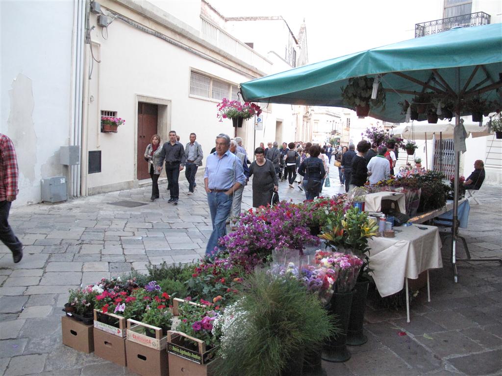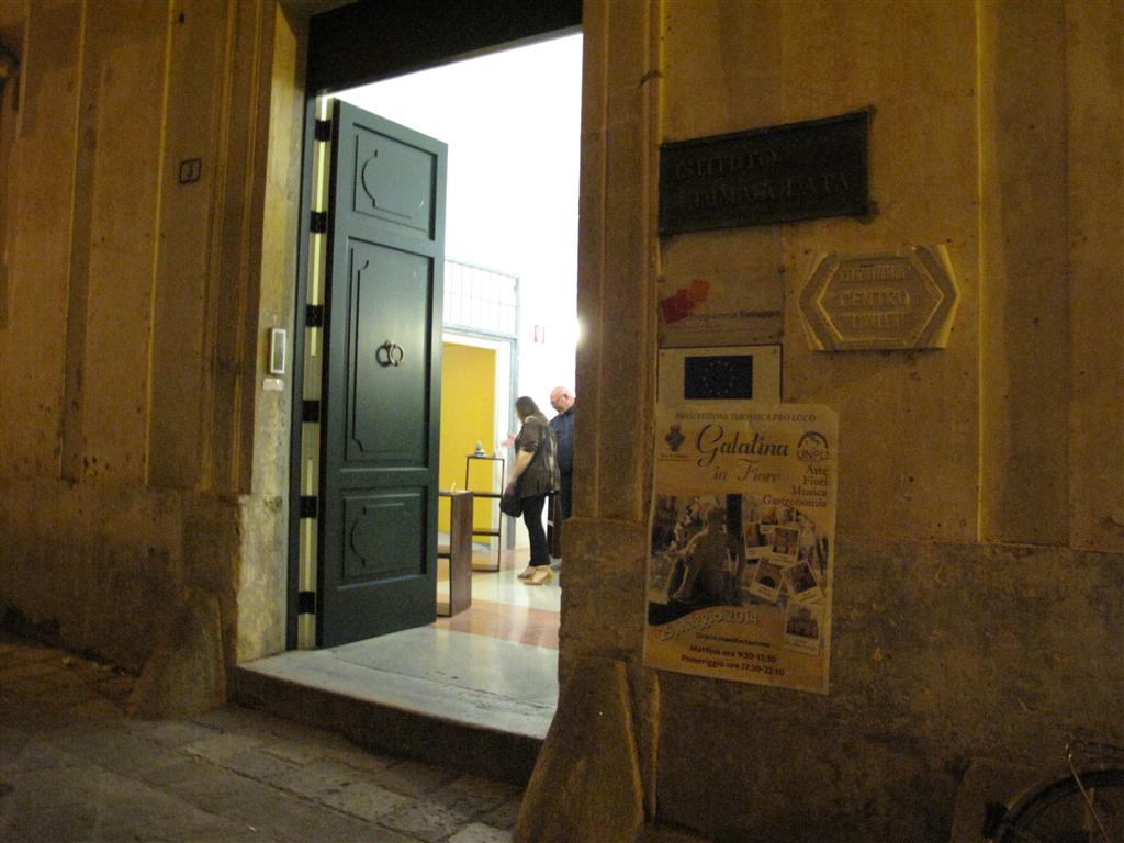 Chiudendo questa doverosa parentesi, vorrei raccontarti le emozioni che ho provato visitando i vari "punti" in fiore nelle vie del centro. Particolarmente emozionante per me è stato sedermi per qualche istante, sulla panchina in pietra leccese, nel cortile dell'Istituto Immacolata, da tutti conosciuto come "le moniceddre". Lì, di solito, erano sedute Suor Vincenza e la Signorina Papadia che ci sorvegliavano come la leonessa fa con i propri cuccioli. Ho frequentato la scuola materna in questa struttura, che è sorprendentemente ritornata ai suoi splendori dopo i recenti restauri. Quindi qualche risultato si sta avendo in questa nostra Città. Anche l'inizio dei lavori di ristrutturazione del Cavallino Bianco fa ben sperare in una Galatina non più sorniona e piatta, ma vispa e frizzante. C'è da augurarsi che ritorni ad essere il "centro" del Salento, e non solo geograficamente. Non dimentichiamo che il "Galateo" la definì "l'ombelico del Salento".