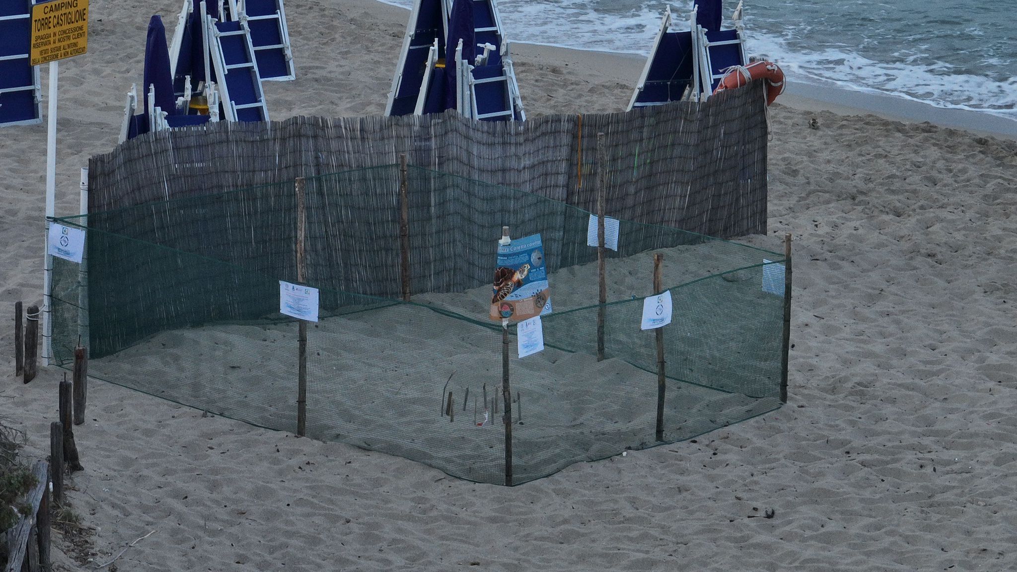 Da evidenziare è stato precisato al termine del monitoraggio e messa in sicurezza “che la causa del danneggiamento del nido è dovuta al fattore naturale delle mareggiate che in quel particolare tratto di costa spesso portano via tanta sabbia creando dei veri e propri dislivelli”. a completamente delle attiva, nella mattinata di lunedì gli operatori dell'Amp Porto Cesareo hanno creato una nuova recinzione ancora più sicura, contrassegnata da un percorso info-formativo che spiega sia il ciclo di vita sia la nidificazione delle Caretta caretta, percorso caratterizzato dall’installazione di cartelli ed illustrazioni a colori.
