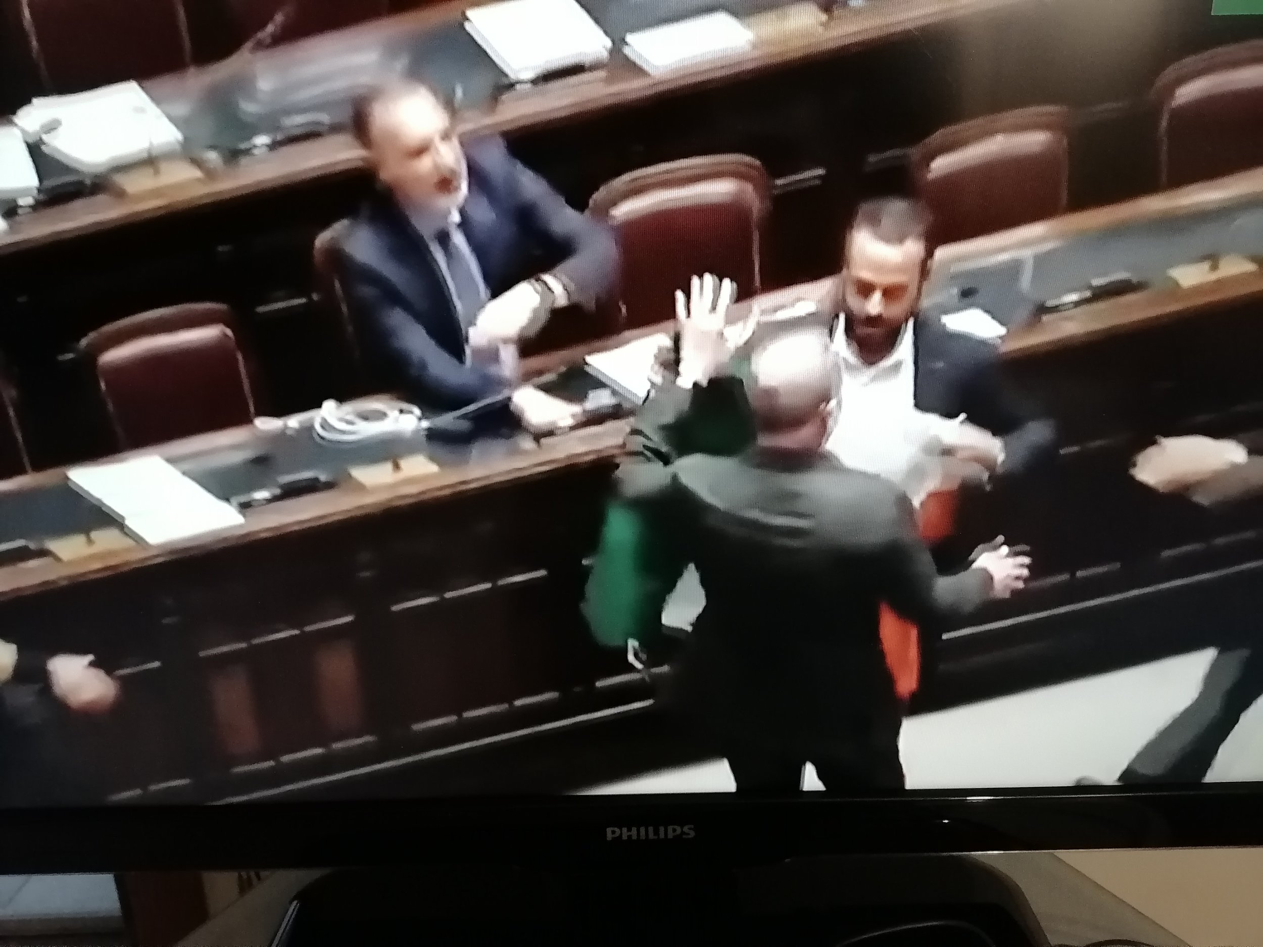 Le scene che da quel momento si sono succedute (spinte, pugni, calci, invettive) sono indegne in ogni luogo ma diventano gravissime nel tempio della democrazia italiana.