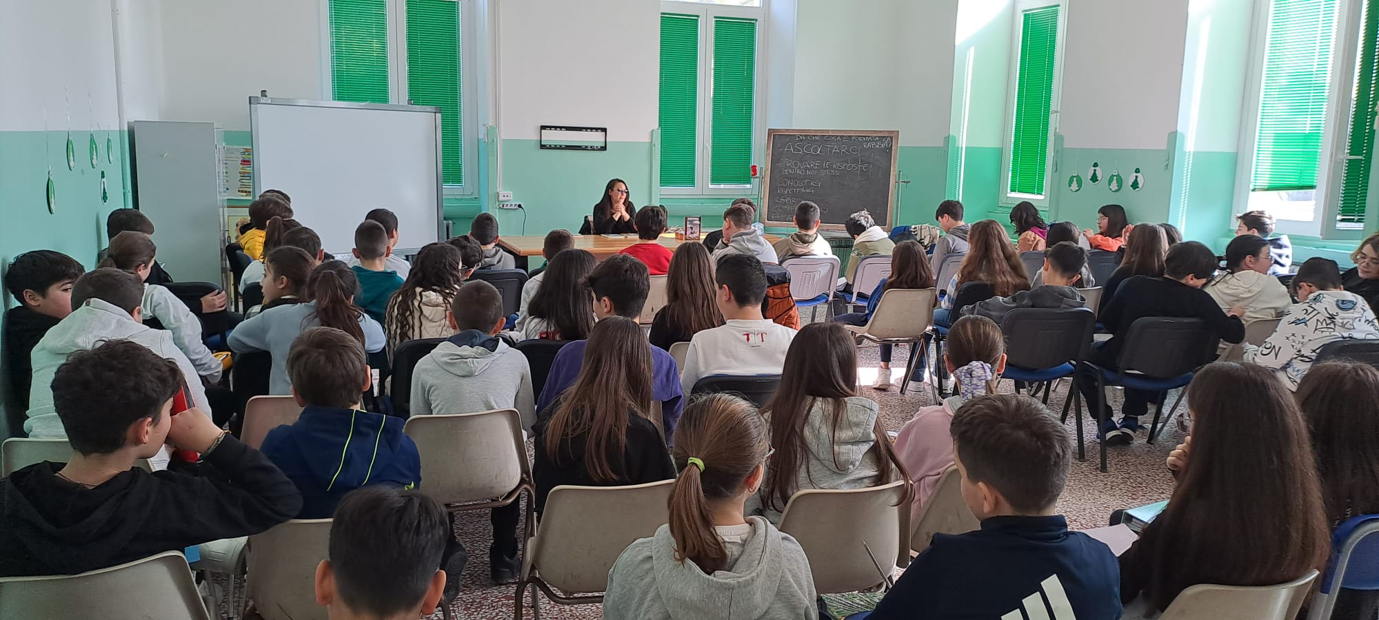 La storia, narrata a più di cento ragazze e ragazzi che ascoltavano assorti, ha rappresentato uno di quei momenti di educazione dei giovani in cui il nostro Istituto crede profondamente, non una classica lezione, ma un confronto, uno scambio, un’occasione per riflettere, una “conversazione” sulla figura di un eroe positivo: Marcel Marceau, un uomo, un attore, iconico re del mimo francese del Novecento, esempio edificante di coraggio, intraprendenza e umanità, perché sfidò il Nazismo e salvò centinaia di bambini ebrei dalla follia che portava con sé. L’autrice ha interagito con i ragazzi, leggendo alcuni passi significativi del romanzo, ponendo domande, soddisfacendo le tante curiosità, trascinando i presenti nel mondo affascinante di Marcel Marceau, rivelando una storia di speranza, solidarietà e amicizia.