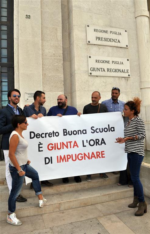 In relazione al termine ultimo (fissato per il 13 settembre) a disposizione della Giunta per impugnare davanti alla Corte Costituzionale la legge 107, altrimenti detta 'Buona Scuola', i Consiglieri regionali pugliesi del Movimento 5 Stelle Rosa Barone, Gianluca Bozzetti, Cristian Casili, Mario Conca, Grazia Di Bari, Marco Galante, Viviana Guarini e Antonella Laricchia dichiarano: “Come preannunciato siamo disposti a tutto. Abbiamo appena personalmente riscontrato dall’Avvocatura che non c’è ancora traccia del mandato per l’impugnazione.