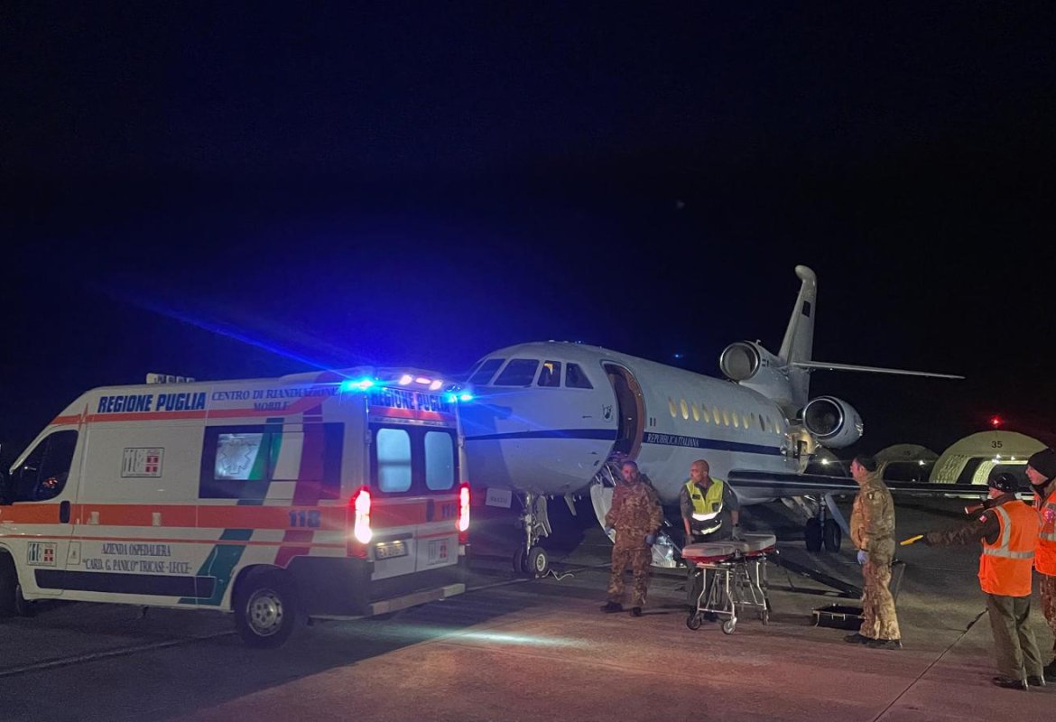 Un uomo di 47 anni ricoverato presso l’Ospedale Cardinale G. Panico di Tricase è stato trasportato con un volo speciale dell'Aeronautica Militare dall'Aeroporto di Galatina a quello di Ciampino