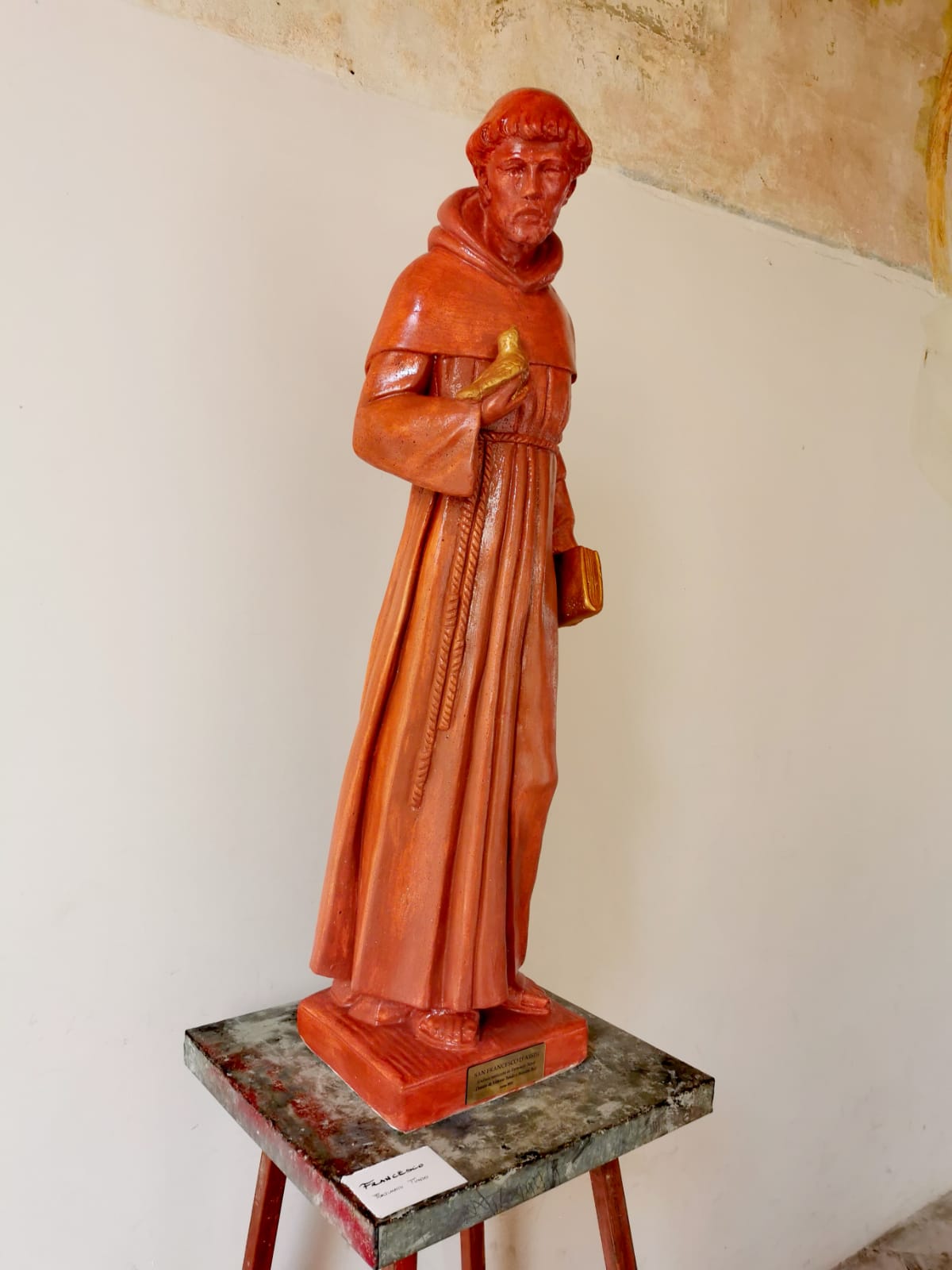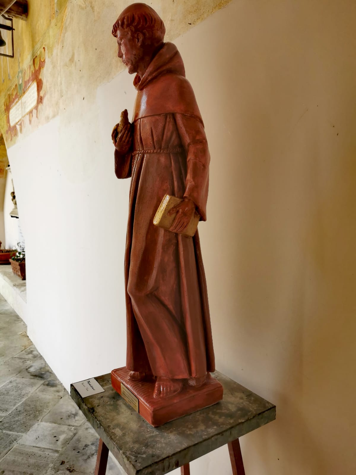 Chi si addentra nel chiostro della Basilica di Santa Caterina a Galatina, da ottobre può ammirare una nuova opera d’arte che ne va ad arricchire il già inestimabile patrimonio: si tratta di una statua in cemento policromo, alta m.1,30 e collocata in una nicchia della parete, realizzata e donata ai frati francescni dallo scultore galatinese Fortunato Tundo, docente di Arti figurative presso il Liceo Artistico P. Colonna.