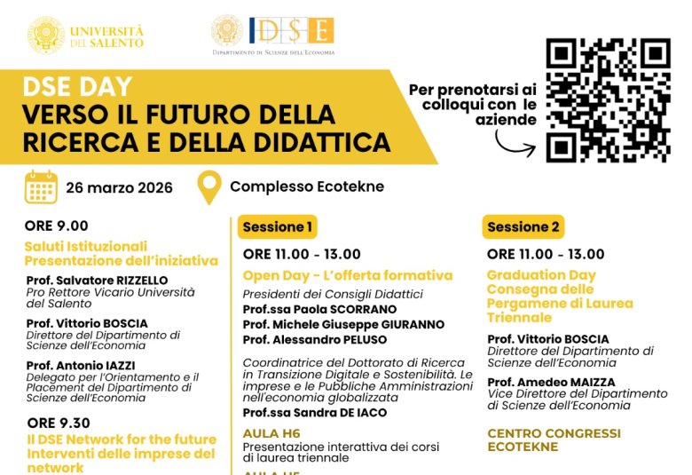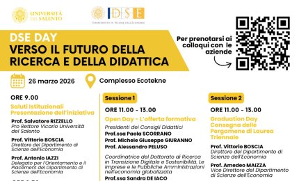 La nuova edizione del “DSE day”, organizzato dal Dipartimento di Scienze dell’Economia dell’Università del Salento per la giornata del 26 marzo 2026, rappresent
