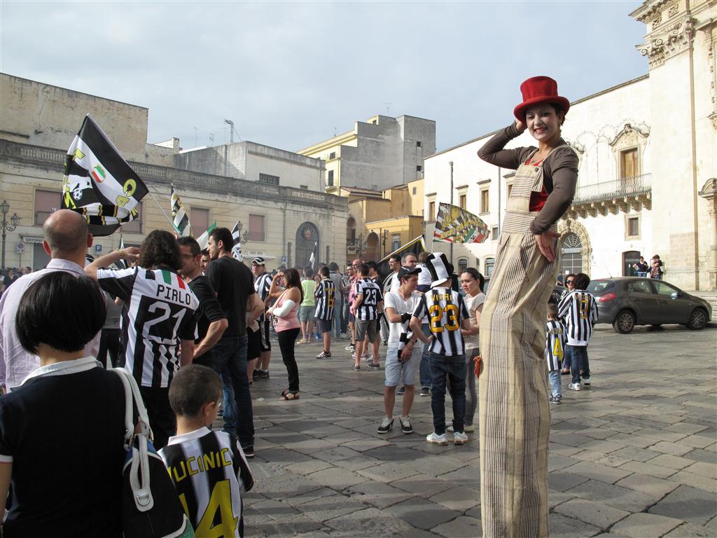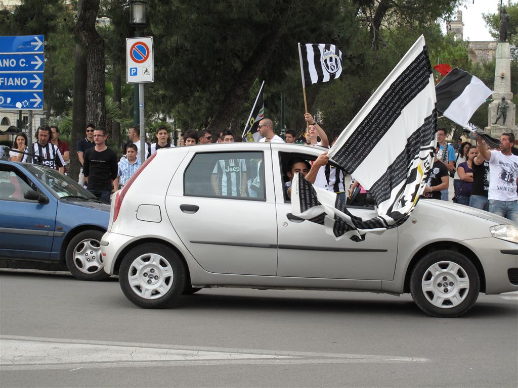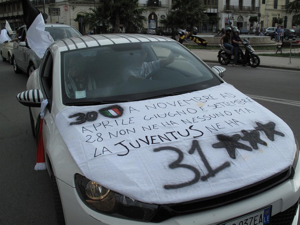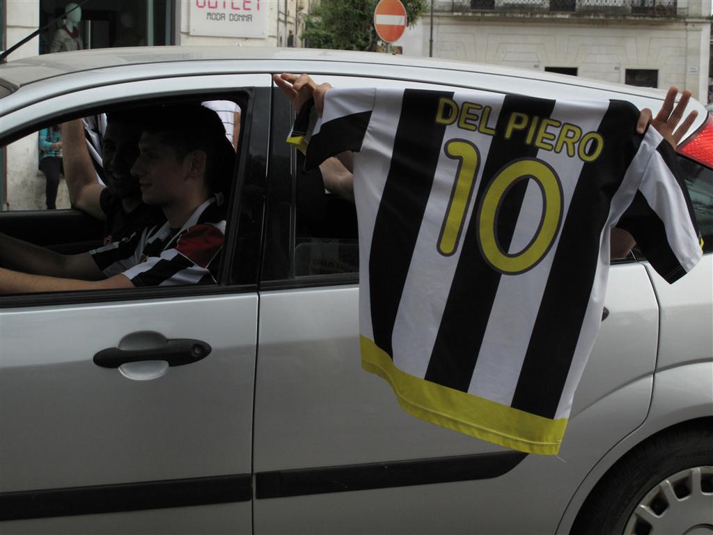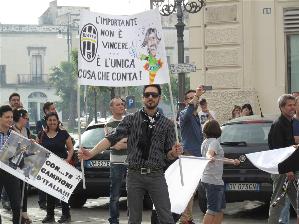 "Quell'uva è acerba. A noi interisti non piace". Le parole di Piero, grande tifoso nerazzurro e titolare dell'Oasi Bar, sono, per gli juventini galatinesi, il più bel commento al trentunesimo scudetto conquistato dalla Vecchia Signora del calcio italiano. Mentre sono iniziati i caroselli intorno alla 'Pupa', la città sembra tingersi di bianco-nero. Il popolo juventino sta accorrendo in Piazza Alighieri. A piedi, in auto, in bicicletta nessuno vuole mancare alla grande festa che è cominciata in tutta Italia al novantaquattresimo di Juventus-Palermo, finita 1-0.