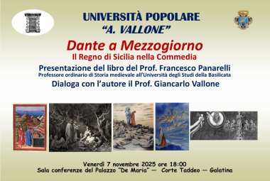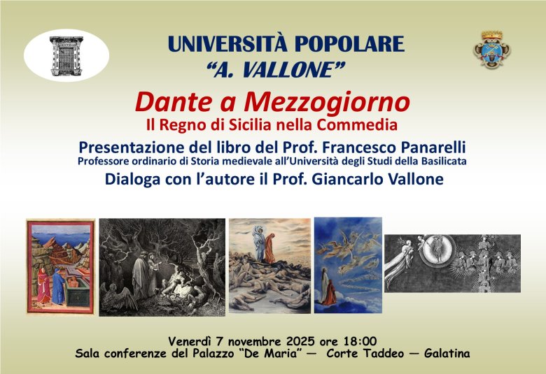 Oggi venerdì 7 novembre 2025 alle ore 18:00, nella Sala conferenze dell’ex Palazzo De Maria, in Corte Taddeo, l’Università Popolare “Aldo Vallone” propone la presentazione dell’