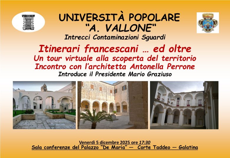 Venerdì 5 dicembre 2025 alle ore 17:30, nella Sala conferenze dell’ex Palazzo De Maria, in Corte Taddeo a Galatina