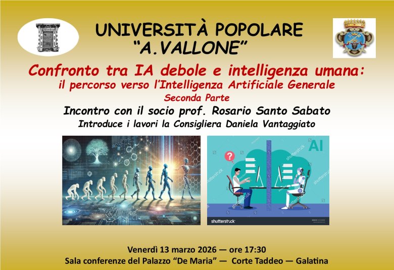 Oggi venerdì 13 marzo 2026 alle ore 17:30, nella Sala conferenze “De Maria”, in Corte Taddeo, è previsto il secondo incontro con il nostro associato Ros