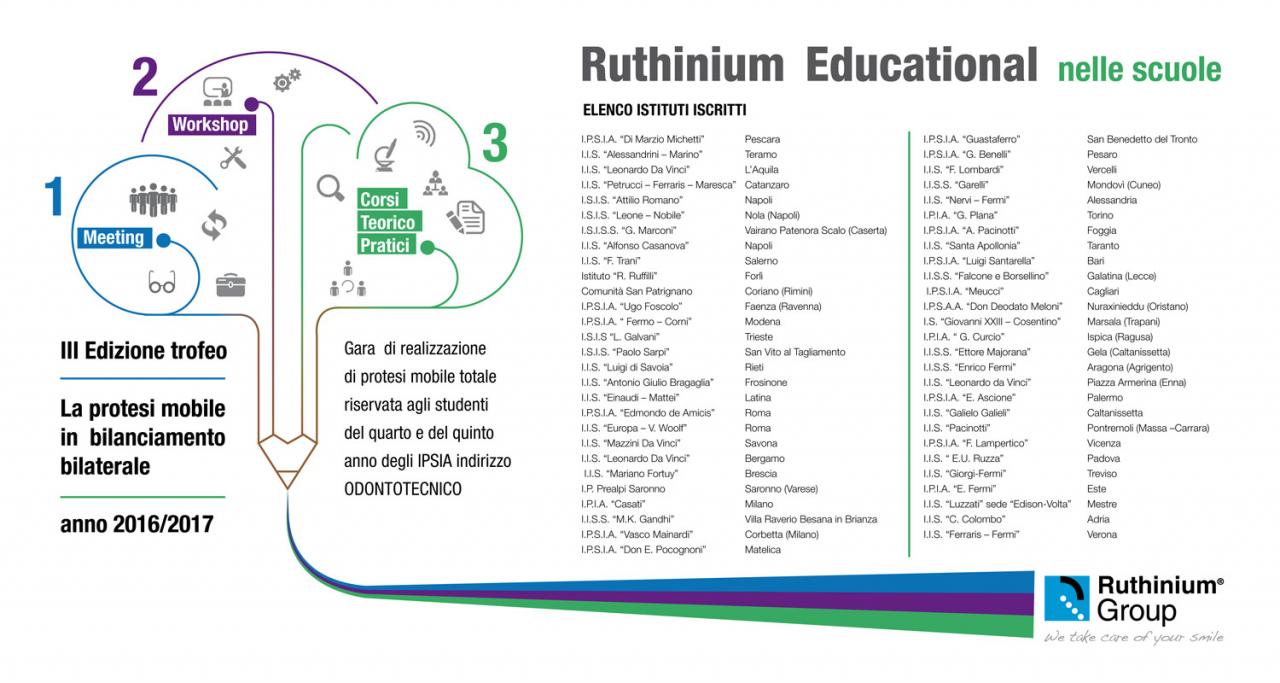 La premiazione del concorso si terrà il 9 giugno prossimo presso l’Aula Magna dell’Istituto “Falcone e Borsellino” a partire dalle ore16:00. Saranno presenti i rappresentanti dell’azienda Ruthinium, le autorità locali, i rappresentanti di categoria ed i dirigenti degli istituti nei quali è attivo l’indirizzo odontotecnico.