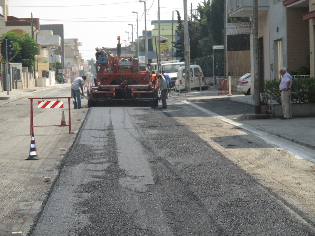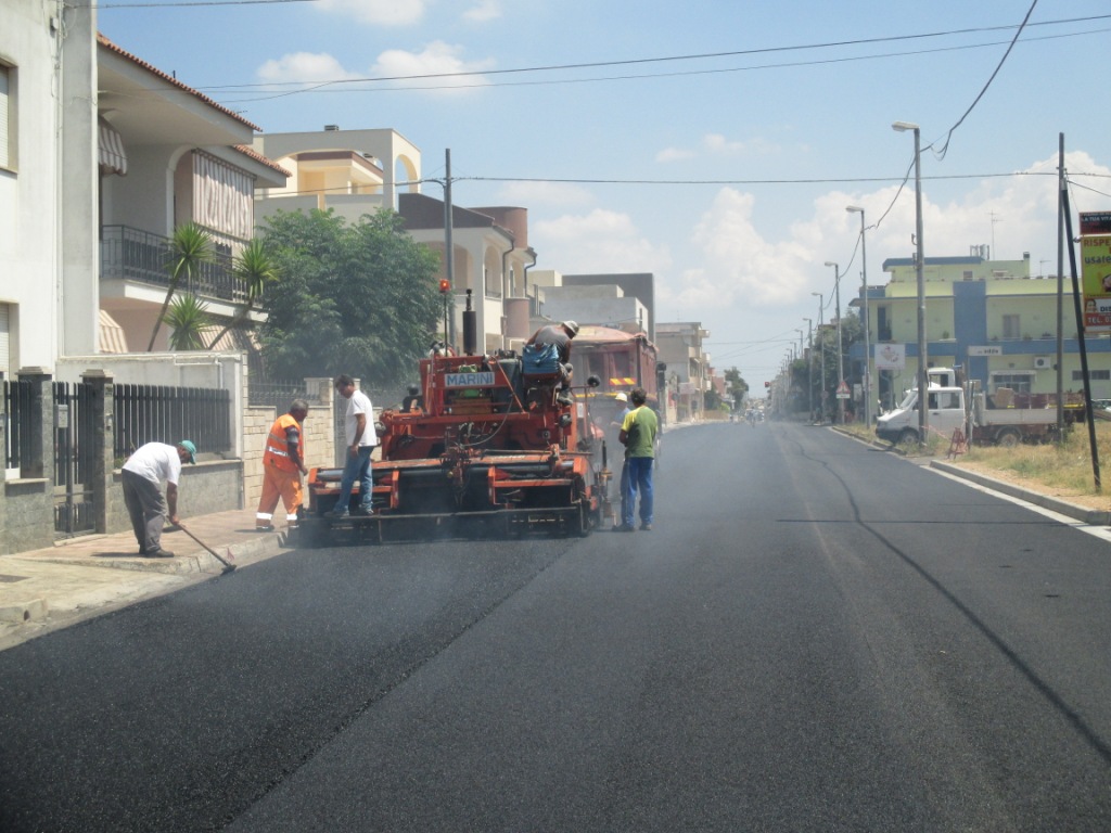 4) Via Isola d’Elba – Via Molise – via Arno. L’intervento ha interessato la sostituzione del manto bituminoso oltre al risanamento di tratti distrutti dalle radici dei pini della vicina piazza “Falcone e Borsellino” mediante il rifacimento della massicciata stradale con relativa pavimentazione con bynder e tappetino bituminoso e il rifacimento delle zanelle e cordoni divelti.