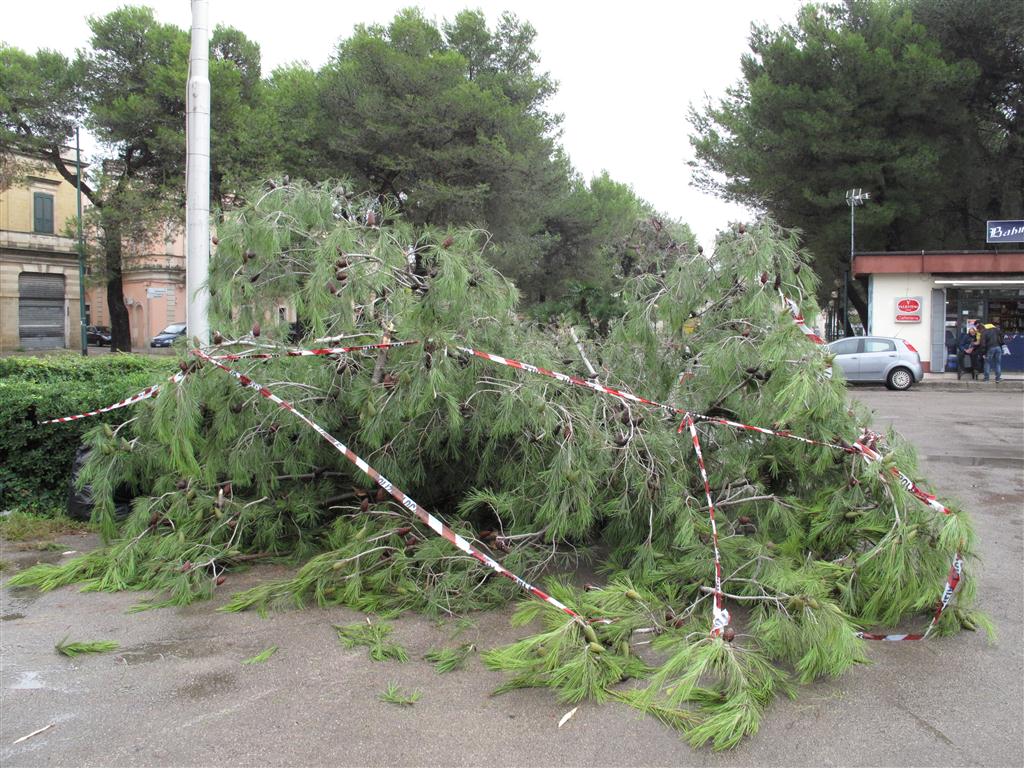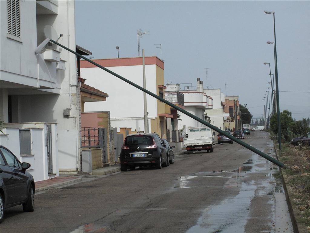 In via Caruso un palo della pubblica illuminazione si è adagiato su una casa. Alberi sono caduti sulla strada per la masseria del Duca e a Collemeto. Una plafoniera si è staccata in corso Porta Luce.