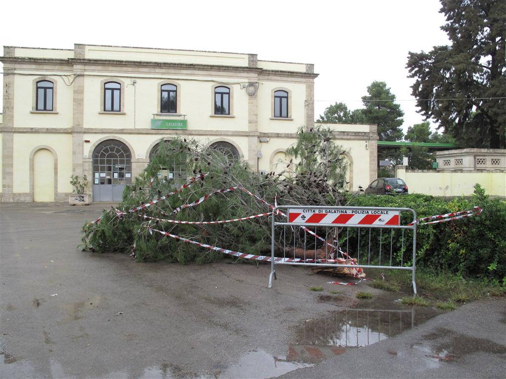 Un salice piangente è caduto accanto alla chiesa di San Sebastiano. Gli uomini del Nucleo galatinese diretti da Vito Murrone, hanno transennato la zona. In piazzale Stazione, invece, hanno dovuto rimuovere un enorme ramo di pino che era precipitato sull’asfalto. In via Viola da un eucalipto del Liceo artistico si è staccata una grossa cima.