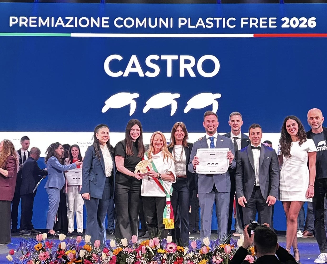 Il Comune di Castro nella giornata del 14 marzo 2026 ha ricevuto a Roma il prestigioso riconoscimento di “Comune Plastic Free”, promosso da Plastic Free Onlus, nell’ambito della cerimonia nazionale svoltasi presso il Teatro Olimpico.