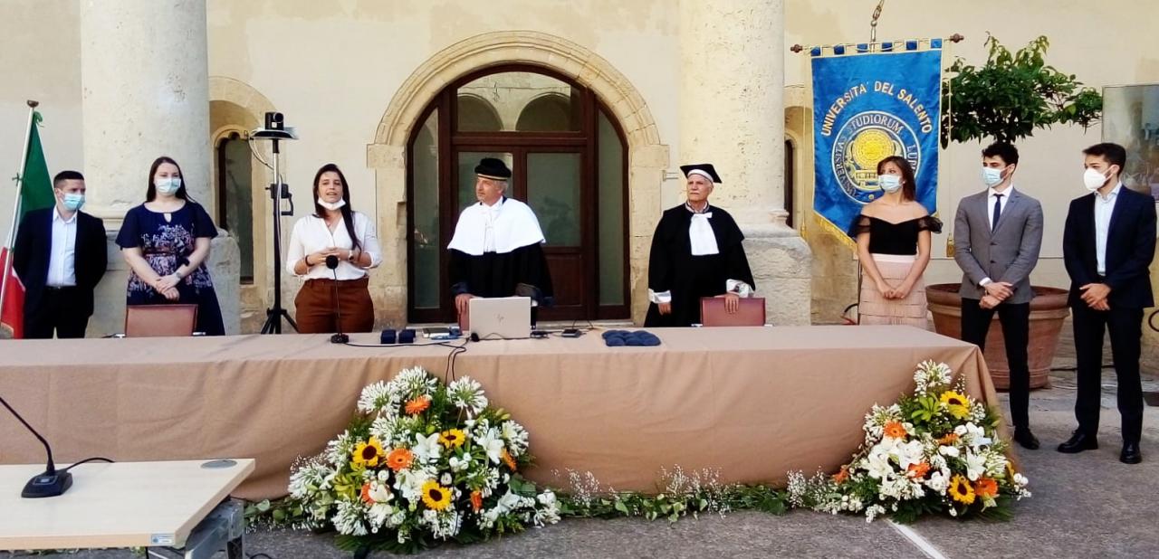 Nelle immagini: • ricerche in laboratorio • il team al completo • il team con il Rettore Fabio Pollice nel corso dela cerimonia di consegna dei sigilli d’Ateneo, avvenuta il 6 luglio 2020 in Rettorato • il team con il professor Massimo De Vittorio, docente a UniSalento di Elettronica e coordinatore del Center for Biomolecular Nanotechnologies dell’Istituto Italiano di Tecnologia (CBN – IIT Lecce)