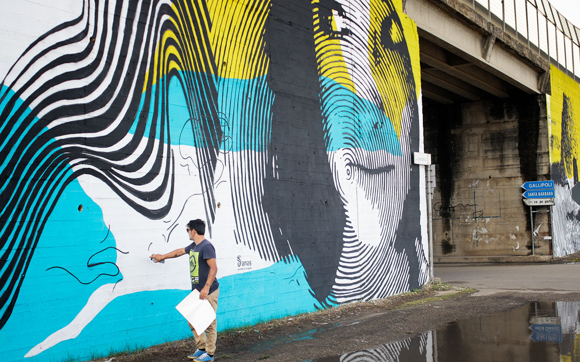 Il caso di studio scelto è stato il murale ‘Musica Popolare’ (2017) del collettivo Orticanoodles nel quartiere Ortica di Milano. L’opera, che raffigura alcuni protagonisti della musica e della cultura milanese, tra cui Dario Fo, Ornella Vanoni, Enzo Jannacci e Giorgio Gaber, si estende per quasi 400 metri quadrati su un cavalcavia ferroviario ed è divenuta un simbolo identitario per la città.