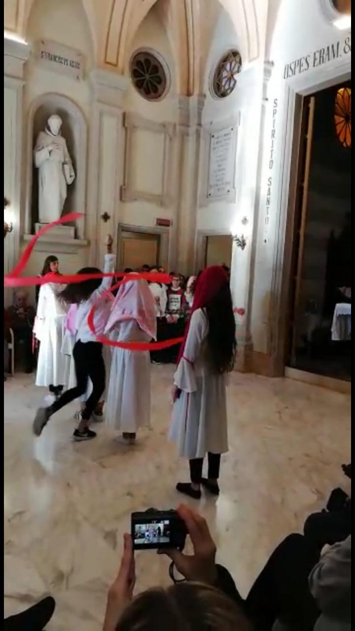 Appena arrivati nel meraviglioso edificio, siamo stati accolti calorosamente dagli anziani ospiti che erano visibilmente emozionati, i loro volti si sono illuminati alla nostra vista e noi ci siamo piacevolmente commossi. Le compagne del gruppo danza hanno subito iniziato a ballare sulle note di “Feliz Navidad “, altri di noi si sono diretti nel backstage per trucco e “parrucco” di scena. Abbiamo presentato alcuni sketch comici incentrati sul confronto generazionale nonni-nipoti, ironizzando sulla disinvoltura con cui i giovani utilizzano le nuove tecnologie e i social in contrapposizione alla quasi totale “ignoranza” degli anziani in questo campo.
