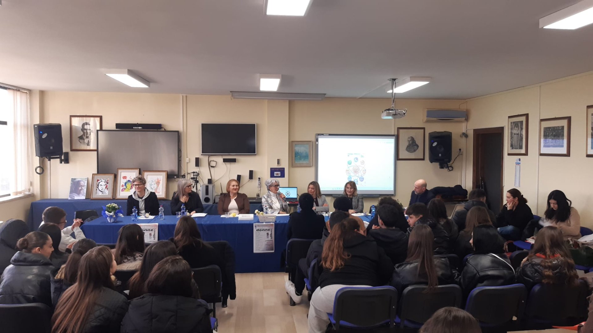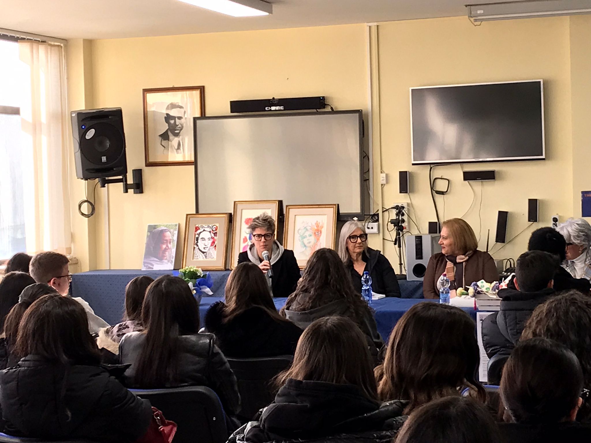 Il dirigente Vincenzo Melilli ha accompagnato la mattinata introducendo le ospiti e dando ai ragazzi la possibilità di leggere alcuni dei testi realizzati e che si concentrano su donne più o meno conosciute che in qualche modo hanno lasciato un segno nella storia.