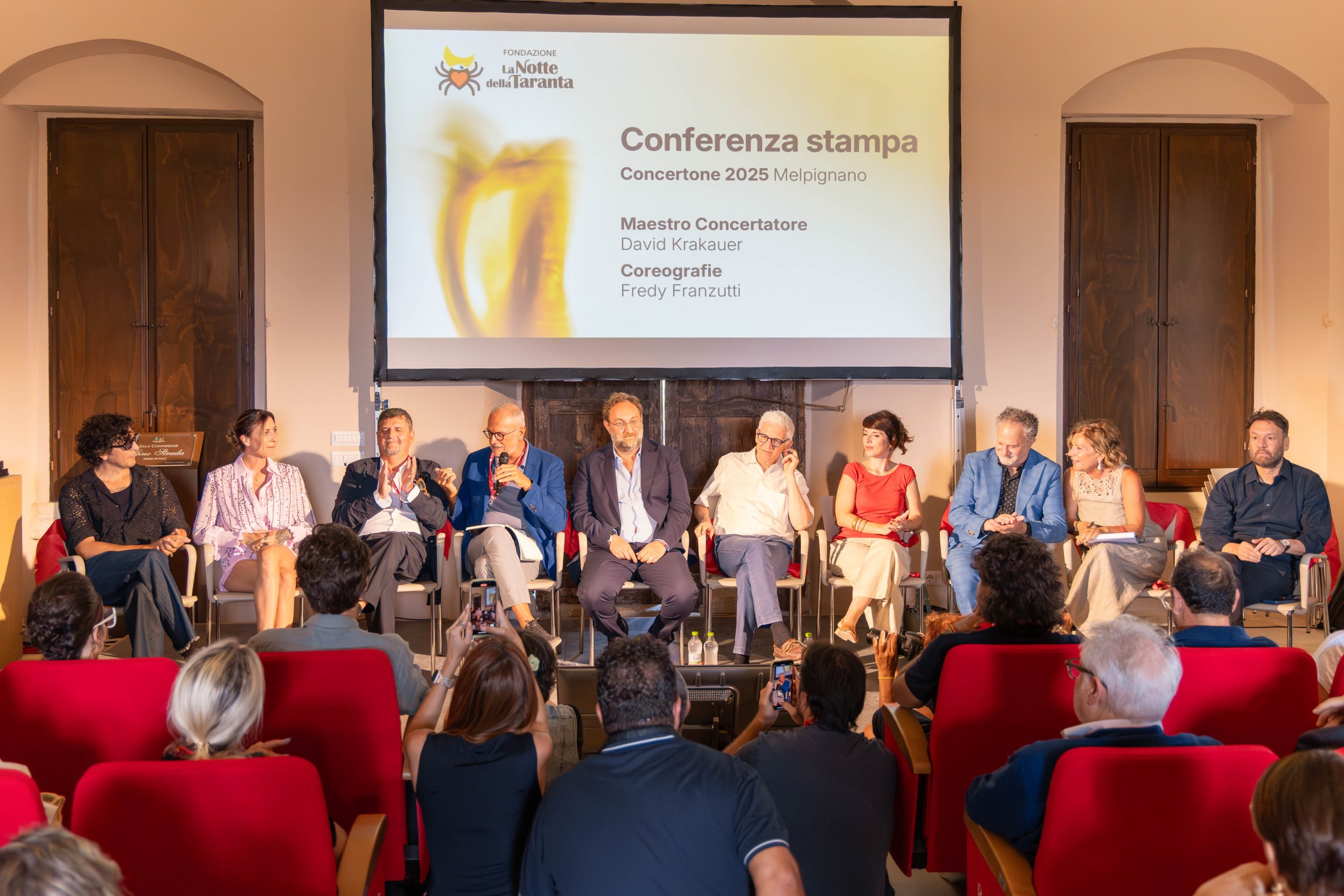 Un ringraziamento speciale, oltre che ai maestri Krakauer e Franzutti, va da parte mia all’Orchestra Popolare de La Notte della Taranta, che ha dimostrato ancora una volta non solo il suo altissimo livello artistico, ma anche il profondo legame con questa manifestazione. Per i Padri costituenti la cultura rappresentava la forma più alta di educazione per i cittadini del futuro. Allora non c’era un’idea di mercato legata ai beni culturali: oggi la realtà è diversa, ma questo non deve spostarci dal nostro compito. Dobbiamo fare bene il nostro mestiere, contribuire alla formazione dei cittadini, offrire messaggi di pace e speranza. E anche preoccuparci di assicurare a progetti come questo investimenti importanti, come riusciamo a fare grazie al sostegno delle istituzioni e non solo. Ma prima di tutto la Notte della Taranta è e deve restare una festa: una festa di allegria, di pace, di convivenza. Il titolo scelto quest’anno, Sotto lo stesso cielo, parla da solo: la cultura unisce, crea ponti, non divide mai. Non conosce nemici, non ha nulla a che fare con guerre e conflitti, ma getta le basi della convivenza civile. Già con il Festival Itinerante abbiamo lanciato dei segnali importanti: abbiamo sempre cercato di unire la tradizione alla capacità di innovare, e lo stesso avverrà nel Concertone. È il mio primo anno alla guida di questo percorso: non guardo al passato se non per riconoscere con gratitudine il grande sforzo di chi ha voluto questa manifestazione e di chi studiando le nostre tradizioni ne ha posto le basi. A loro va il mio ringraziamento, insieme a quanti ancora oggi ci accompagnano in questa grande impresa collettiva.»