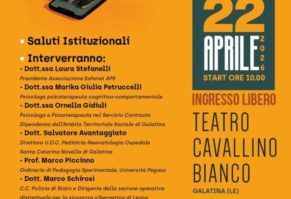 Si terrà martedì 22 aprile 2026 alle ore 10:00, presso il Teatro Cavallino Bianco di Galatina, il convegno dal titolo