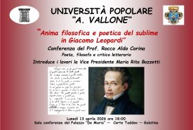L’Università Popolare “Aldo Vallone”, con l’adesione del Circolo Athena, dell’Associazione “Galatina al Centro” e del