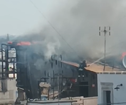 Un violento incendio sta ancora interessando l'ultimo piano di un edificio da anni in ristrutturazione in piazza Vecchia a Galatina.