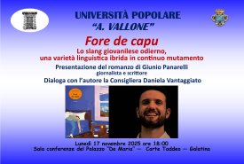Oggi lunedì 17 novembre alle ore 18:00, nella Sala conferenze dell’ex Palazzo De Maria, in Corte Taddeo, l’Universit