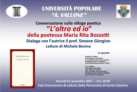 Oggi venerdì 21 novembre 2025 alle ore 18:00, nella Sala francescana di cultura della Parrocchia di Santa Caterina, i