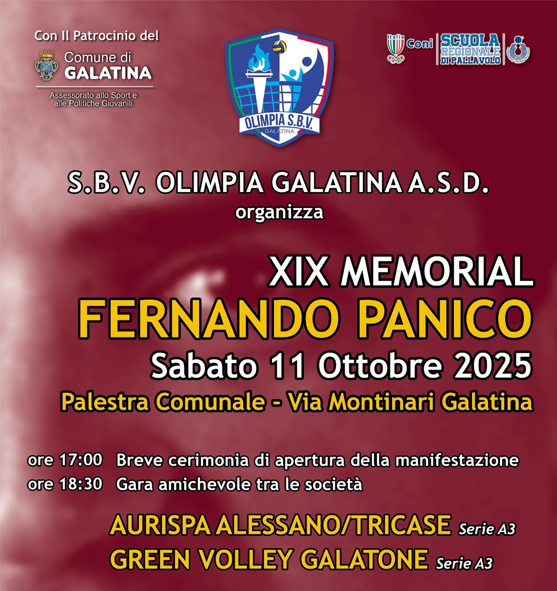 E’ per sabato 11 ottobre 2025, alle ore 18:30, nella palestra comunale di via Montinari a Galatina che si rinnova un appuntamento carico di ricordi volto a commemorare la figura di Fernando Panico.