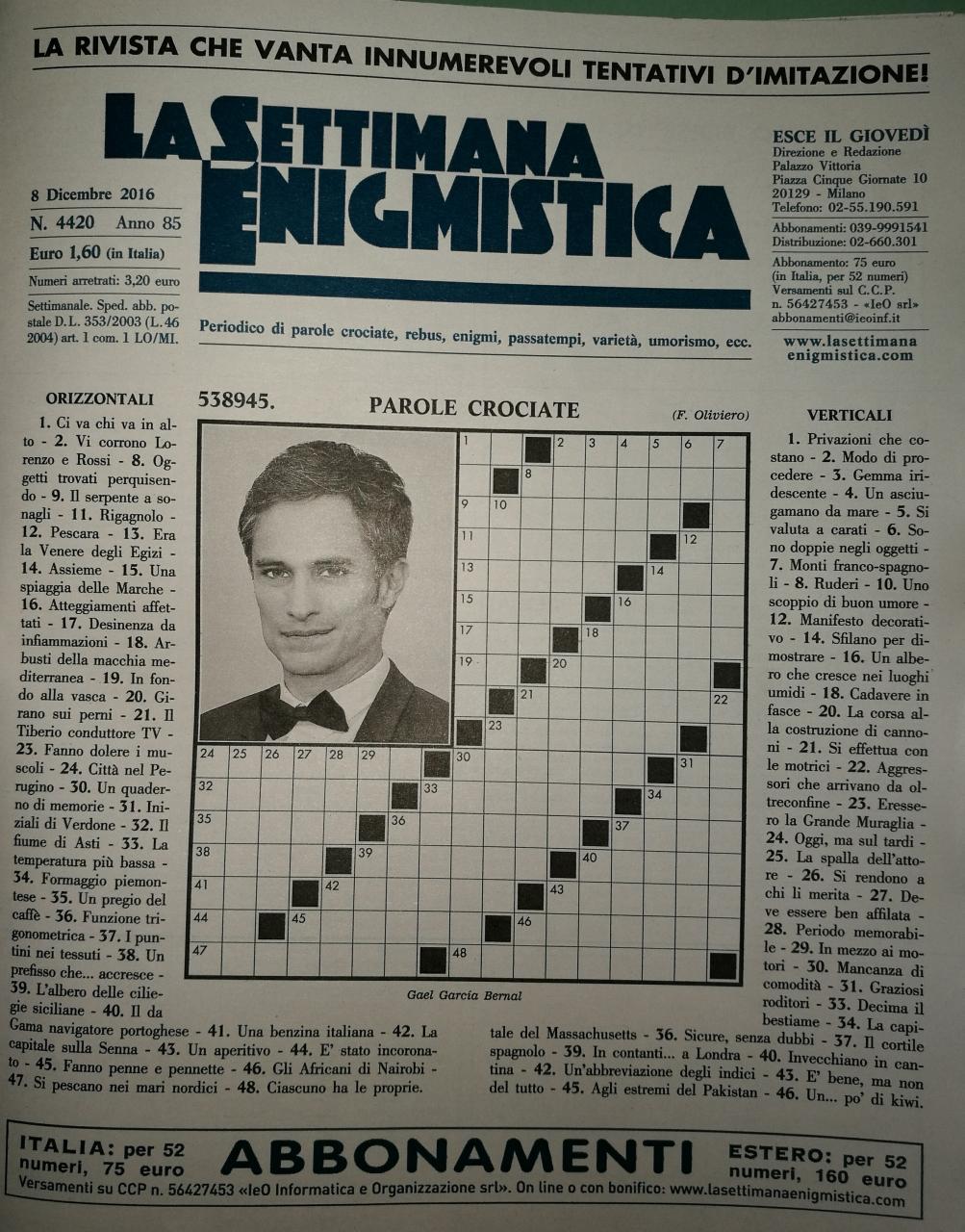 Sul numero 4420, anno 85, della Settimana Enigmistica, in edicola dall'8 dicembre, a pagina 21 c'è un cruciverba dedicato ad "Una gita a..." Galatina. La definizione della meta si trova sul 47 orizzontale. Cinque foto di importanti monumenti e luoghi galatinesi corrispondono ad altrettante parole da inserire per risolvere il gioco enigmistico. La Basilica va collocata nelle otto caselle del 53 orizzontale. Piazza Dante va scritta tutta unita nel 35 orizzontale mentre via Umberto prende 10 quadratini del 21 orizzontale. La Matrice è collocata nel 27 orizzontale. Si chiude con Santa Maria della Grazia (Immacolata) nel 25 orizzontale. L'autore delle foto è V. Coppi.