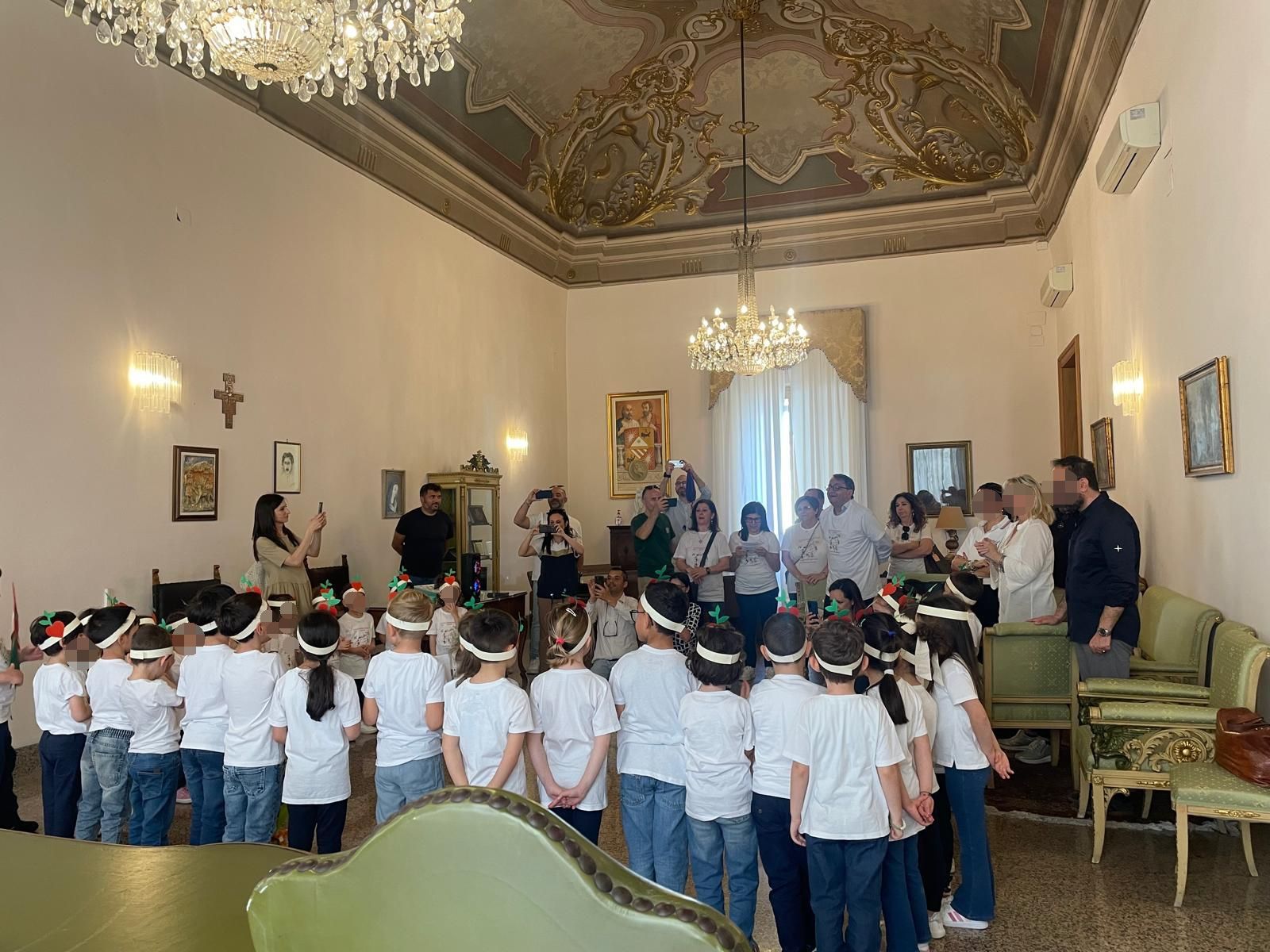 Venerdì 24 Maggio 2024 i bambini e le bambine della Scuola dell’Infanzia di Via Montecassino (I.C. Polo 2 Galatina) hanno vissuto una mattinata diversa dal solito. Accompagnati dai genitori e dalle maestre e scortati dai vigili urbani si sono recati presso il Palazzo Orsini per incontrare il Sindaco, Fabio Vergine e il Vicesindaco, Mariagrazia Anselmi, portare il loro messaggio di pace e fare alcune richieste in occasione della Giornata Mondiale dei Bambini.
