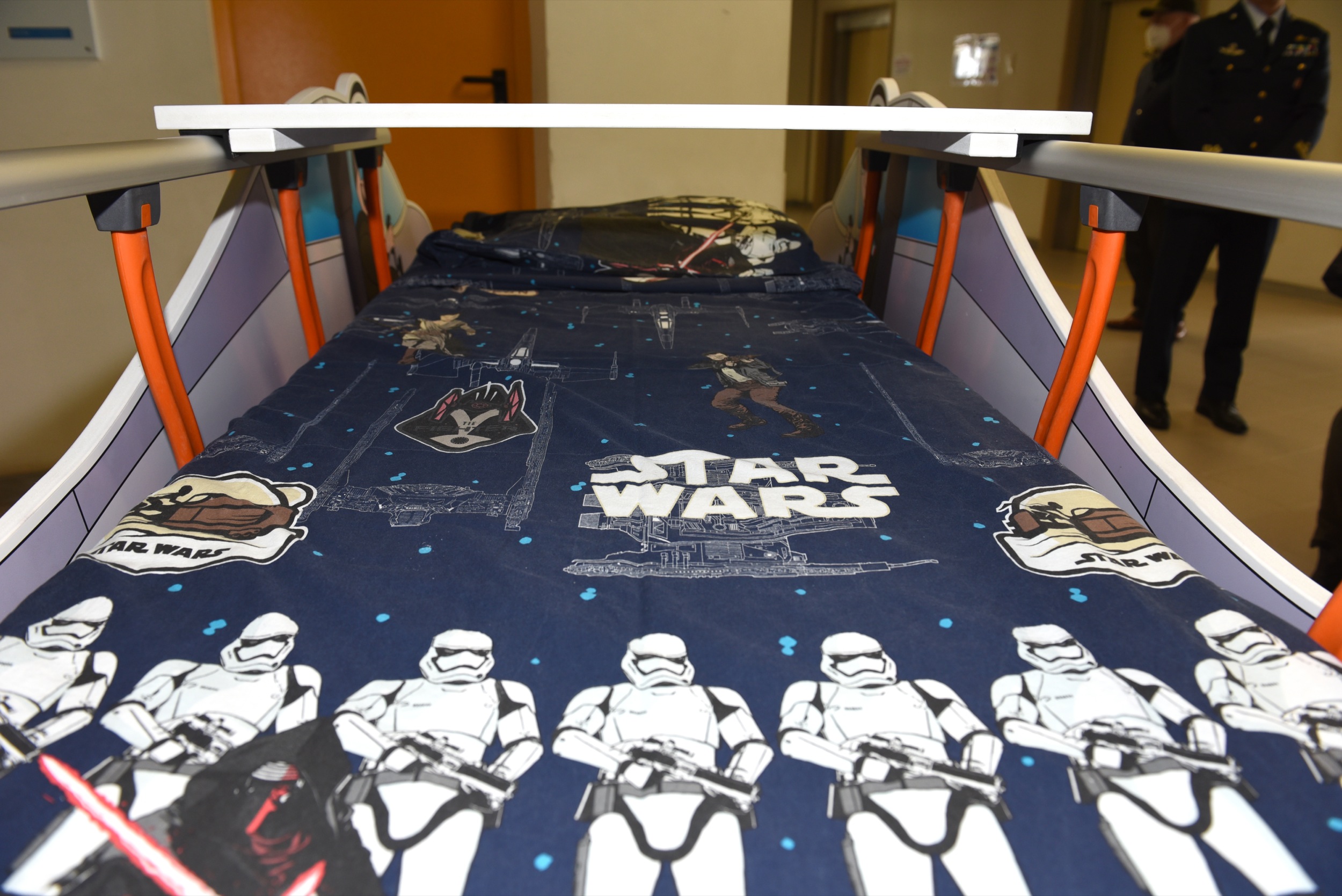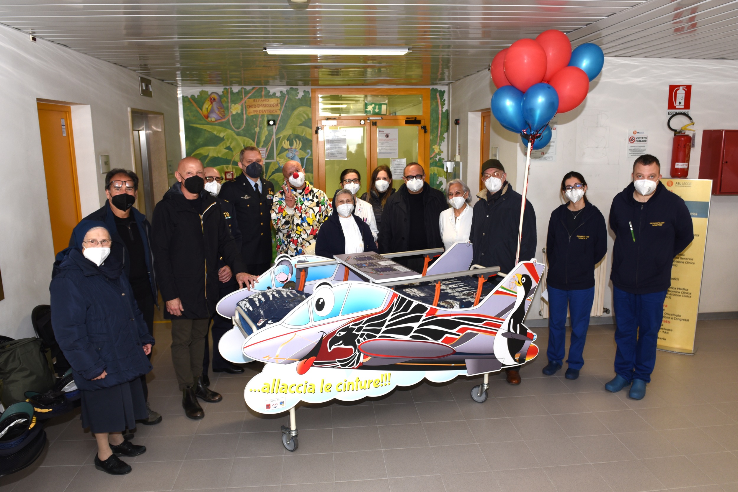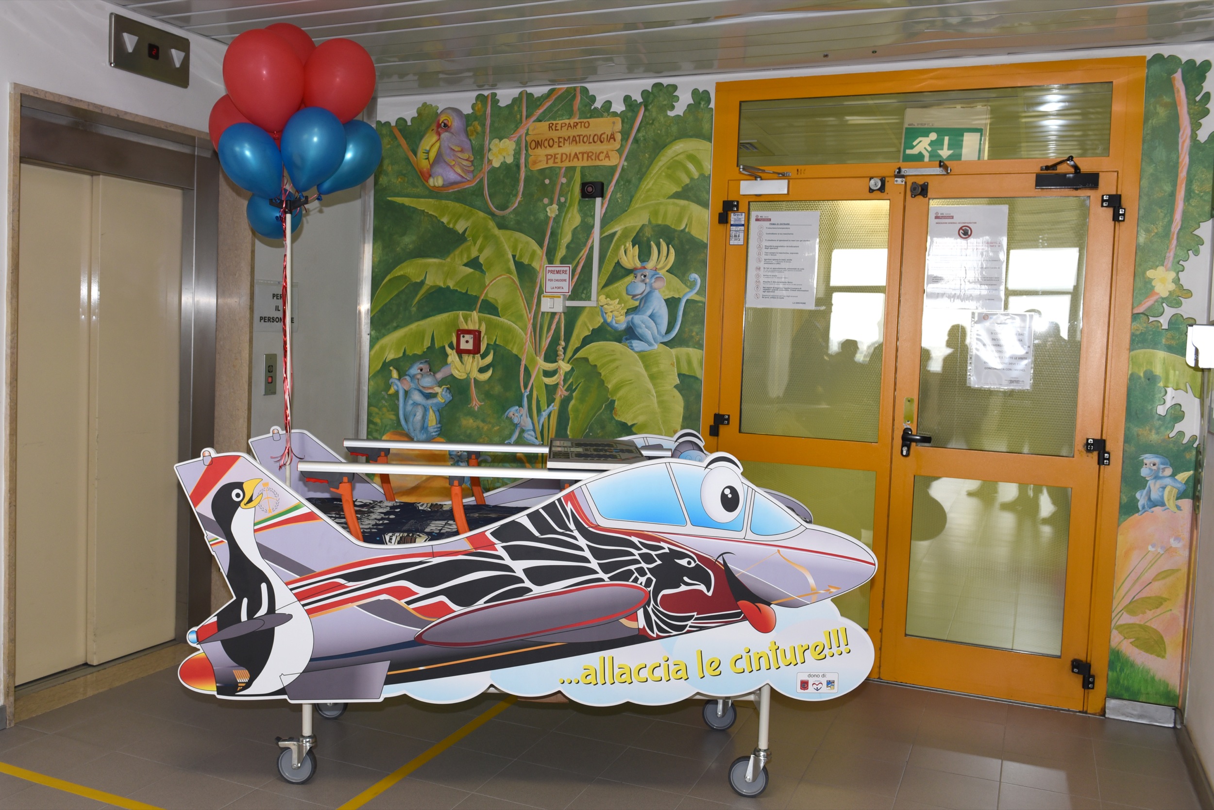 La donazione si è svolta nel rigoroso rispetto delle misure precauzionali imposte dall’emergenza sanitaria e ha visto la partecipazione del dott. Rodolfo Rollo, direttore generale della A.S.L. di Lecce, della dott.ssa Assunta Tornesello, direttore responsabile dell’Unità Operativa, e della dott.ssa Carmen Attanasi della Direzione Medica di Presidio. La lettiga donata riprende forma e colori del velivolo MB339 “Special Color” progettato per festeggiare, lo scorso settembre, il 75° anniversario della scuola di volo; la grafica è stata però reimpostata in chiave fumettistica per cercare di rendere meno angusto uno spazio destinato, per sua stessa natura, ad accogliere bambini che vivono situazioni di disagio. "Ti rialzerò, ti solleverò - Su ali d'aquila ti reggerò - Sulla brezza dell'alba ti farò brillar - Come il sole, così nelle mie mani vivrai." Recita il testo di una canto ecclesiastico citato da Don Gianni, presidente dell’associazione: “L'Aeronautica Militare ancora una volta si è resa partecipe di una carezza sul cuore ed è nata una nuova ‘ludobarella’, che sa risvegliare quel messaggio di speranza. Uomini che sanno attraversare le nuvole con le loro ali d'aquila. Uomini che sanno farsi portatori d'amore con la solidarietà e la preghiera.