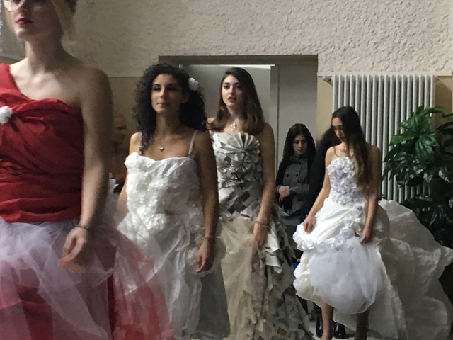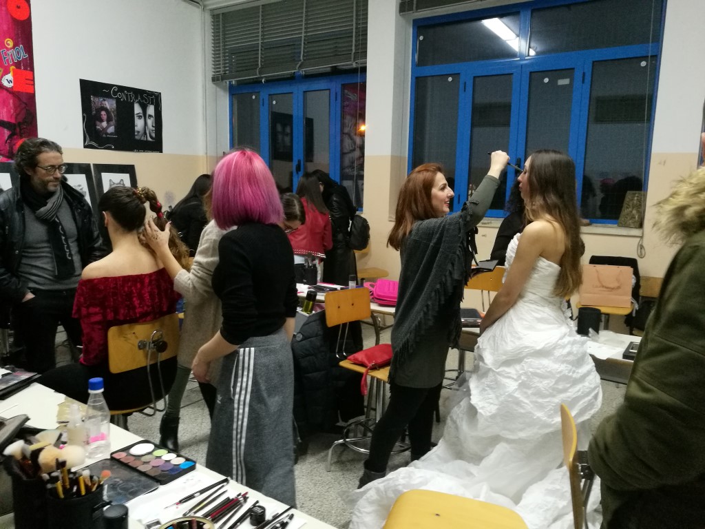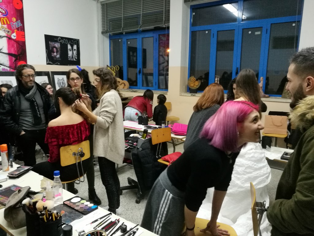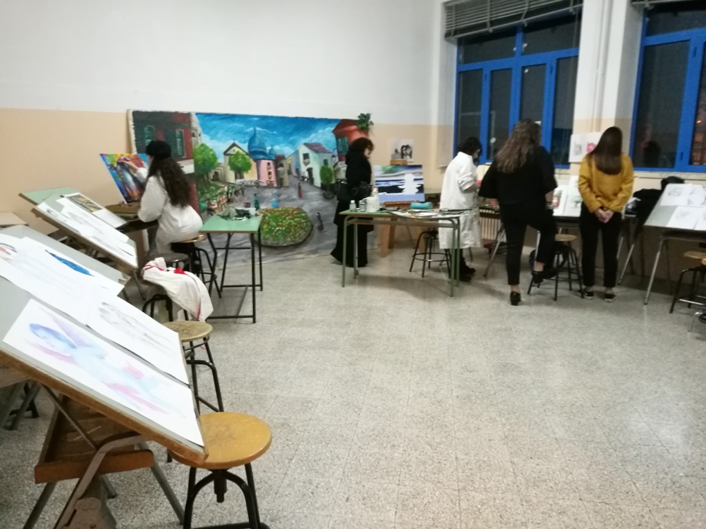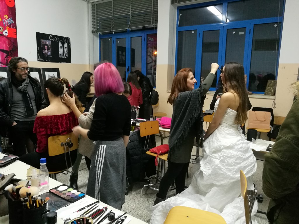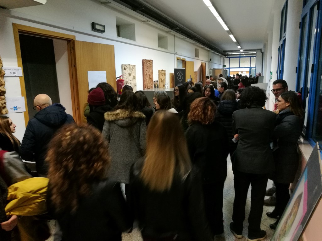 Nei corridoi e nelle aule i visitatori hanno potuto ammirare numerose opere pittoriche e scultoree, i progetti degli allievi del settore Architettura, le realizzazioni degli allievi di Grafica, l’originale mostra storica del manifesto cinematografico ma anche una singolare sfilata di modelle-allieve che indossavano le splendide creazioni di carta realizzate dal settore Arti Figurative, i gioielli creati dagli studenti del settore Design ed il trucco impeccabile curato dalle esperte operatrici dell’Accademia Internazionale del Trucco Make Up Art Pro.