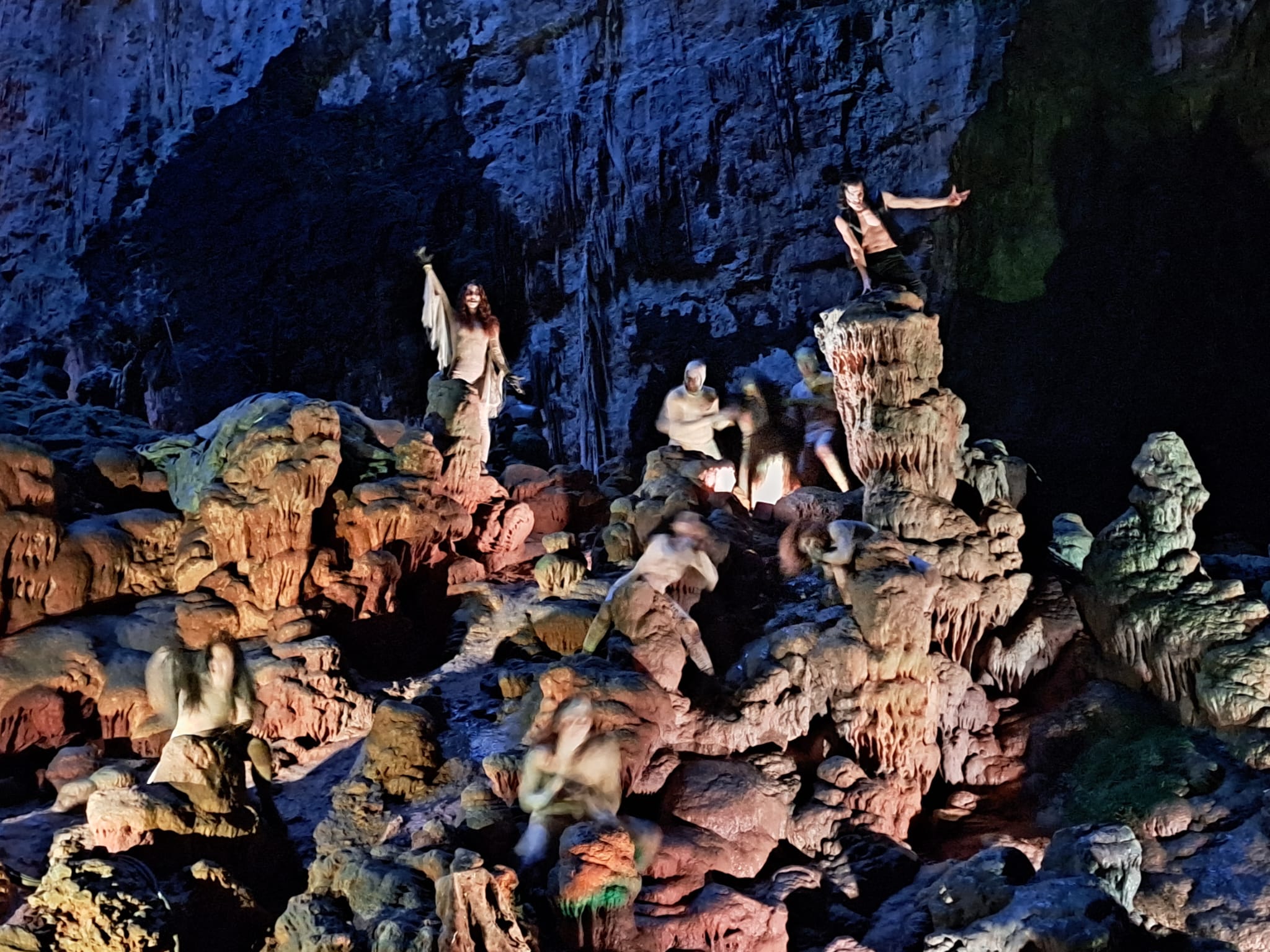 Le Grotte si sviluppano per oltre 3 km a una profondità che supera i 120 metri. Gli speleologi “in erba” del Polo 3 ne hanno percorso un piccolo tratto, in uno scenario stupefacente, dove hanno ammirato stalattiti, stalagmiti, fossili, caverne da nomi fantasiosi e concrezioni di forma incredibile. In questa scenografia naturale, nella “grave” principale gli alunni sono stati il pubblico attento e partecipe dello spettacolo “Hell in the cave” dove attori bravissimi con dinamiche teatrali innovative li hanno condotti nell’Inferno di Dante Alighieri (a volte, così noioso da studiare sui libri di scuola …) e poi a “riveder le stelle” con un carico di emozioni e nozioni notevoli. Spettacolo accattivante e totalizzante fino alla conclusione quando, costretti a riveder le stelle, i ragazzi hanno ripreso il pullman per il rientro.