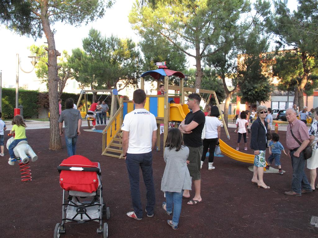 “Tutti i giorni sono venuto a controllare i lavori perché per me il Rione Italia è un fatto affettivo”. Ha la fascia tricolore di Sindaco ma Cosimo Montagna, parla con il cuore di chi è nato e vissuto a lungo nel quartiere. Sono le ore 19:10 del 13 giugno 2013. Ad ascoltarlo sono in tanti: assessori, consiglieri, rappresentanti delle Forze dell’ordine, mamme, papà, nonni. Mancano solo i bambini che, dopo il taglio del nastro, sono subito partiti alla conquista dei nuovi bellissimi giochi di Piazzetta Giovanni Fedele. Non hanno atteso neanche la benedizione di padre Efrem Baldasso (“fa, o Signore, che tutti noi che usufruiremo di questo spazio sperimentiamo nella lealtà il valore dell’amicizia e, superando ogni forma di egoismo, promuoviamo la civiltà dell’amore”) ed hanno incominciato a tuffarsi dagli scivoli.