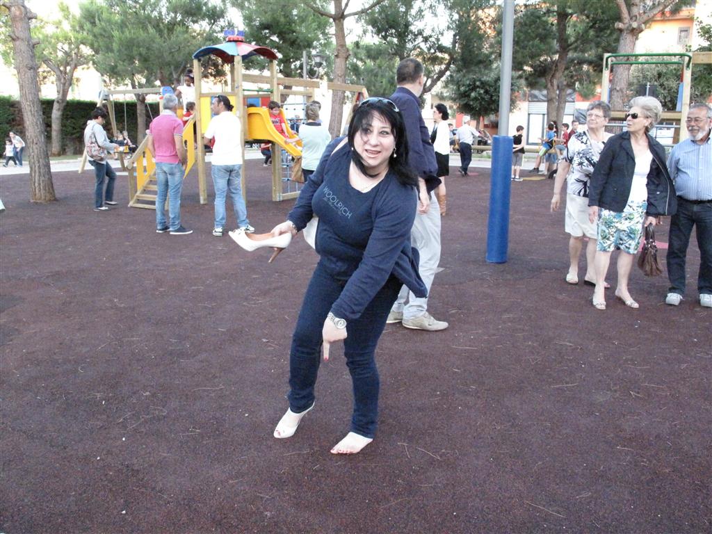 Paola Volante, fra le più attive organizzatrici della manifestazione che nel settembre scorso riuscì a spingere l’amministrazione Montagna verso l’impegno a ristrutturare la ‘villetta Fedele’, sorride e saluta tutti con un occhio alla sua bimba che si muove agile sul morbido tappeto intorno ai giochi.