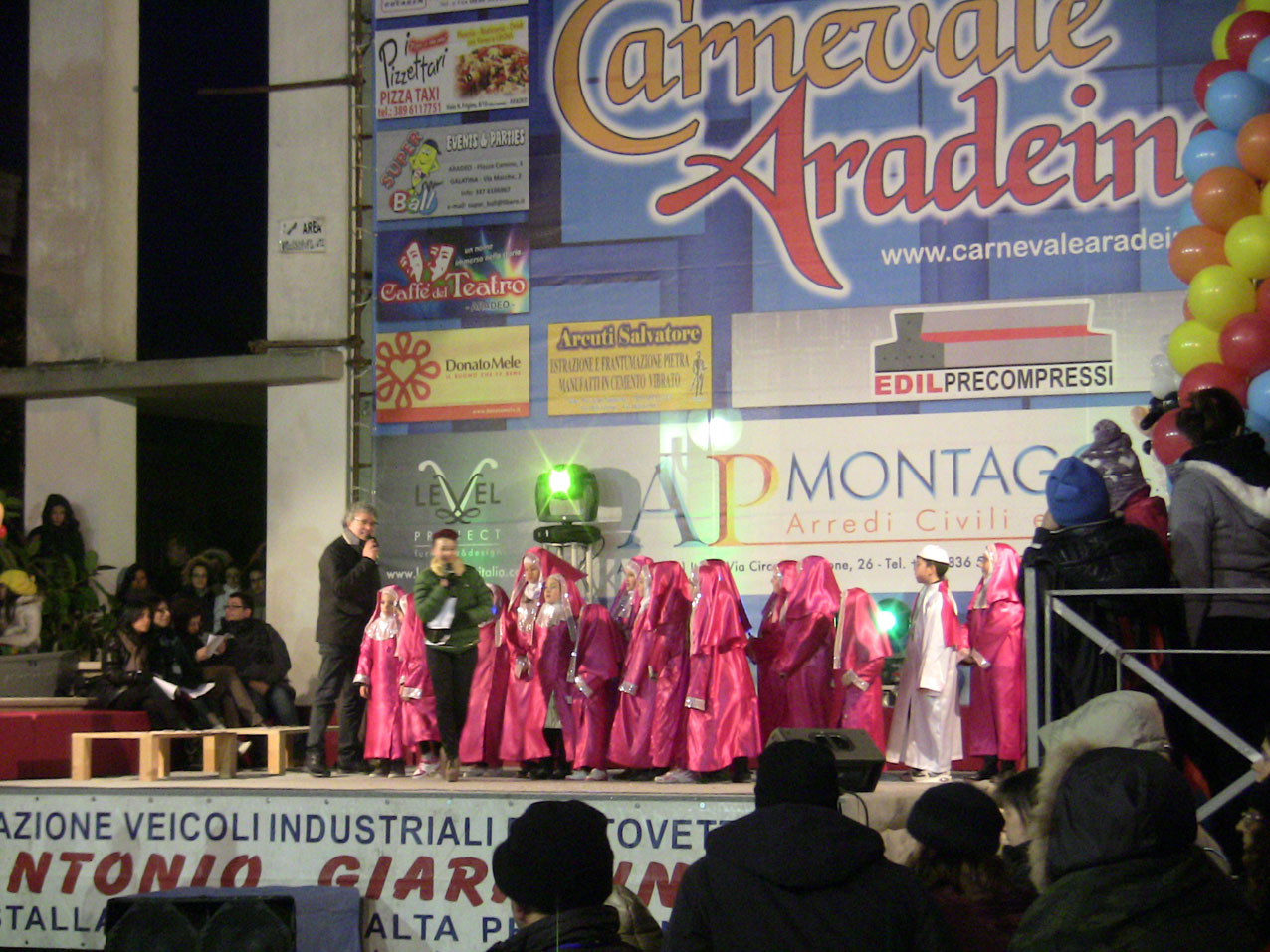 Aradeo Cronaca 11 Feb 2013 / 0 Comments I carri del Carnevale di Aradeo di Franco Mazzotta La sfilata si è svolta domenica 10 febbraio ed è stata molto disturbata dal maltempo. Martedì, 12 Febbraio, 2013 - 01:07 Articoli correlati