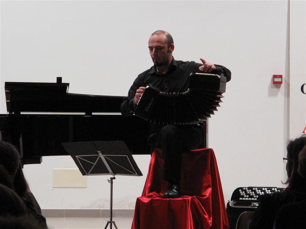 I brani di Piazzolla e Rota, ascoltati in religioso silenzio, hanno fatto scattare in piedi la sala ma tutto il concerto ha messo in evidenza, accanto a quelle musicali, anche le doti mimiche dei due artisti. Mirko Satto è stato costretto a suonare senza un registro del bandeonon (“si è rotto durante le prove”) ma è riuscito, con grande virtuosismo, ad eseguire ugualmente quasi tutti i brani in programma.