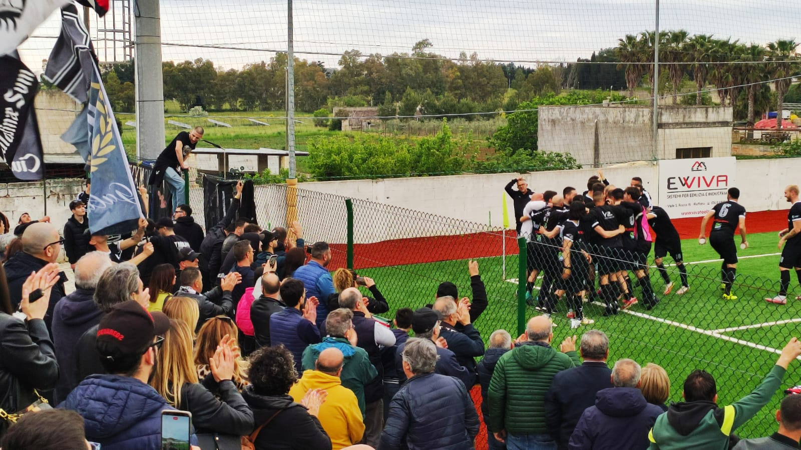 Il Galatina calcio batte in trasferta il Ruffano per 5-1 e resta in vetta al campionato regionale di Prima categoria Girone C con 63 punti in condominio col Cursi che, però, ha giocato una gara in più. Il match si è disputato sull'erba sintetica del campo comunale di Ruffano davanti ad buona cornice di pubblico che ha incoraggiato le squadre in campo con correttezza e sportività. Nel primo tempo il Galatina è partito all'attacco andando al tiro con Mancarella al 6° su assist di Villani; al 16° calcio di punizione di Negro di poco alto sulla traversa; al 30° l'estremo difensore del Galatina De Santis salva il risultato su un pericoloso colpo di testa di un calciatore del Ruffano; al 35° il Galatina sblocca il risultato con un gran gol del bomber Beppe Negro che colpisce al volo scagliando un bolide alla sinistra del portiere Esposito (ex di turno). Nel secondo tempo il Galatina dilaga raddoppiando al 5° con Villani servito da Greco; all'8° è proprio Villani a servire Natale De Benedictis che porta a tre le reti del Galatina; al 21° quarto gol con un gran tiro dell'ottimo Luperto su assist di Villani; al 33° il Ruffano accorcia le distanze con Tarsilla; al 42° quinto gol di Mossolini Becci con un colpo di testa su assist di Villani; al 47° l'under (classe 2005) Mattia Murrone scheggia la traversa con un tiro dalla distanza. Ora il Galatina è atteso mercoledì tre maggio dalla gara di recupero contro lo Zollino che si disputerà sul campo neutro di Galatone alle 19,30.