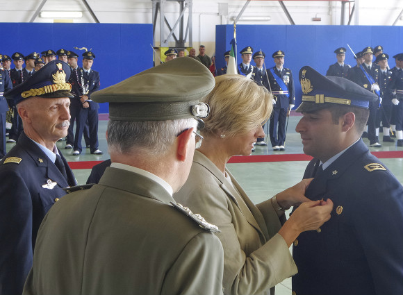 Citando Luis Sepúlveda - “Nessun uccello vola appena nato, ma arriva il momento in cui il richiamo dell’aria è più forte della paura di cadere e allora la vita gli insegna a spiegare le ali” – ai giovani Ufficiali il Ministro ha rivolto un augurio particolare: “siete nati senza saper ancora volare, ma siete riusciti a superare difficoltà, timori e prove che vi hanno ora reso degni di queste Aquile che vi vengono consegnate, e che dimostrano come abbiate finalmente spiegato le vostre ali”.