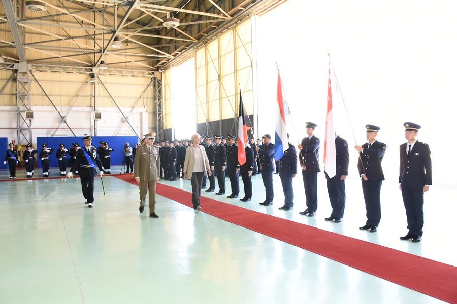 A confermare la rilevanza dell’evento, la presenza delle maggiori cariche istituzionali della Difesa: il Ministro Roberta Pinotti, il Capo di Stato Maggiore della Difesa, generale Claudio Graziano ed il Capo di Stato Maggiore dell’Aeronautica, generale di squadra aerea Enzo Vecciarelli. Presenti alla cerimonia anche alcune autorità militari dei Paesi di provenienza degli allievi stranieri oltre alle autorità locali ed al personale dell’aeroporto schierato per l’occasione.