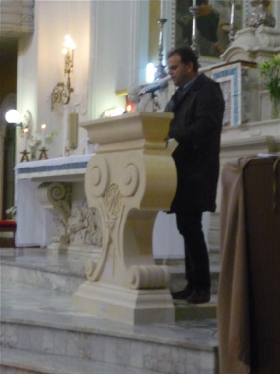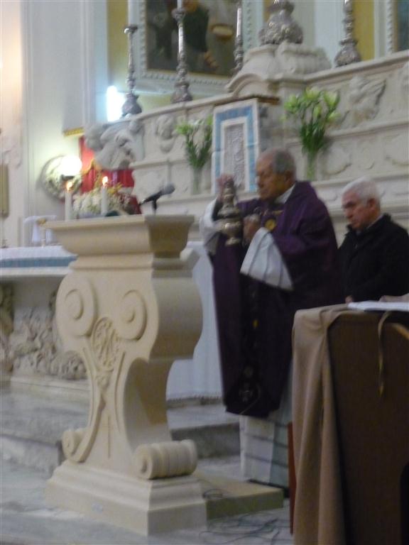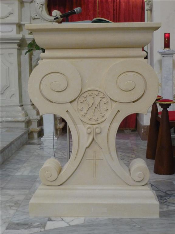 Domenica 1 dicembre don Fedele Lazari, durante la celebrazione Eucaristica delle ore 8 nella Chiesa di M. SS. Immacolata, ha inaugurato il nuovo Ambone, donato da un benefattore. Realizzato in pietra leccese si lega molto con lo stile settecentesco degli altari della Chiesa. L’Ambone è una struttura che consente l’adeguato appoggio dell’Evangelario o del Lezionario, adotta perciò, generalmente, la forma di un comune leggio ma più solido e inamovibile. "Questa struttura è molto importante -spiega Tommaso Manni dell'Arciconfraternita- perché da qui viene proclamata la parola di Dio, luce per il nostro cammino".