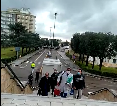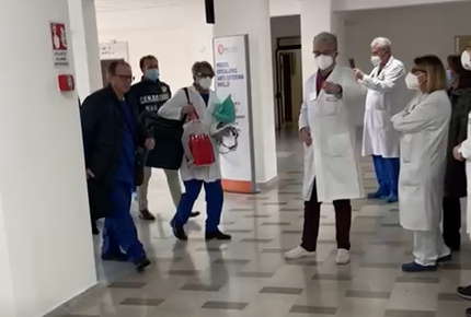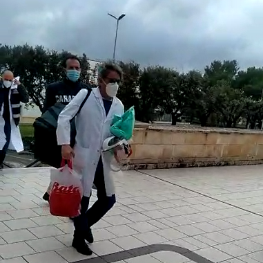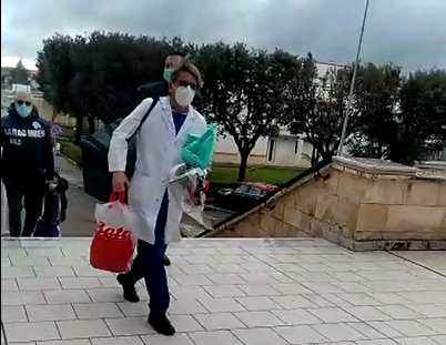 Paolo Tundo, primario f.f. del Reparto di Malattie Infettive, è stato il primo dei sanitari dell’Ospedale di Galatina a ricevere la dose di vaccino anticovid. La scelta è caduta su dieci operatori: quattro degli Infettivi, due di Medicina, tre del Pronto soccorso ed uno del laboratorio analisi del ‘Santa Caterina Novella’. La squadra degli addetti Asl che trasportava il prezioso vaccino nell’apposito contenitore termico è giunta in mattinata presso il nosocomio galatinese a bordo di un’auto di servizio scortata da una macchina della Guardia di Finanza. Nel gruppo era presente anche un carabiniere dei Nas. Ad accoglierla sull’imponente scalinata d’ingresso c’erano il direttore sanitario, Giuseppe De Maria, ed Antonio Palumbo, dirigente responsabile del Pronto Soccorso.