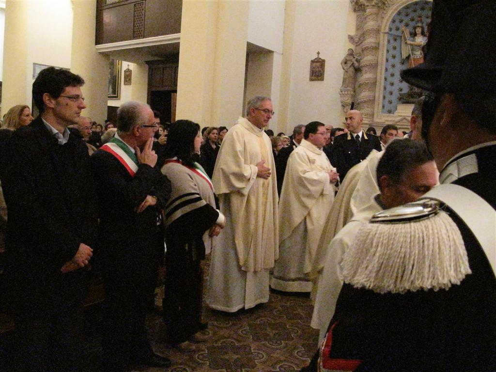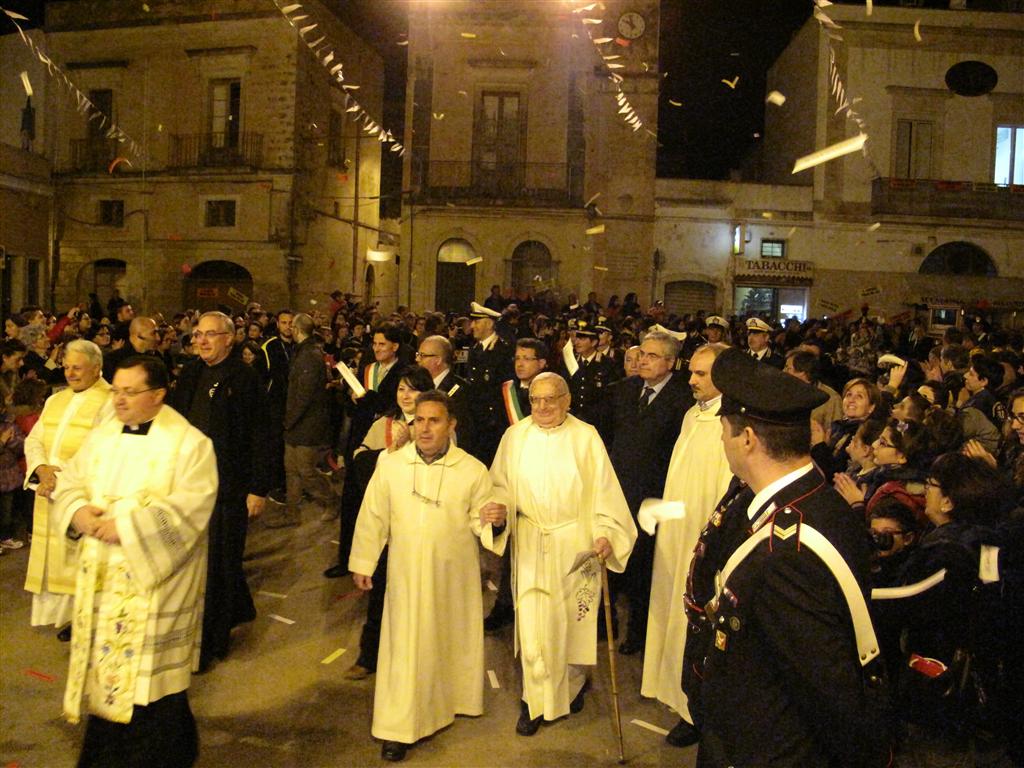 Noha, 18 - “Oggi il Santuario di San Gabriele dell’Addolorata, a Isola del Gran Sasso, (dopo due anni) si è svuotato. San Gabriele è venuto a Noha”. Padre Natale Panetta, passionista, rettore del santuario, parla dall’alto del sagrato della Chiesa Madre della più grande frazione di Galatina e sorride soddisfatto. Ha davanti una piazza San Michele piena di fedeli tra cui Daniela Sindaco, delegata del sindaco di Galatina, due sindaci (Paolo Menozzi, di Collepasso e Oriele Rolli, di Cutrofiano), due vicesindaci (Daniele Moretto, di Aradeo e Luigi Nuzzaci di Sogliano), Salvatore Polimeno, consigliere provinciale, Aldo Aloisi e Daniele Caroppo, consiglieri regionali, i comandanti dei Carabinieri e della Polizia Locale oltre al responsabile della Polizia di Stato.