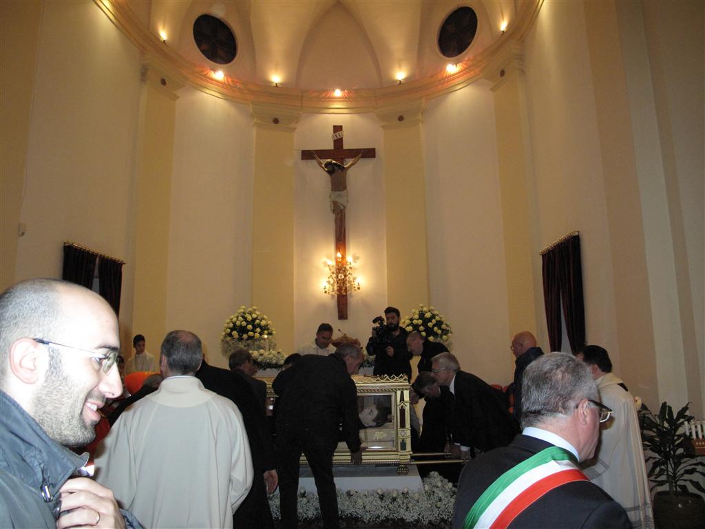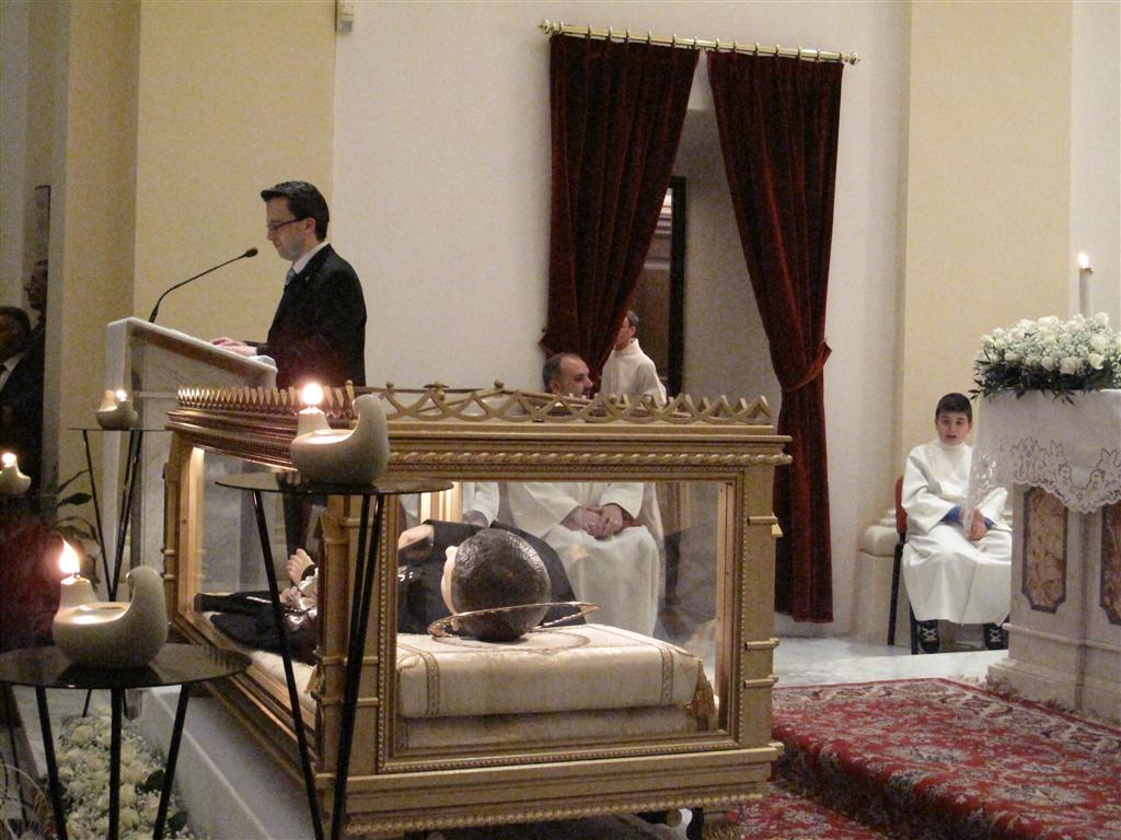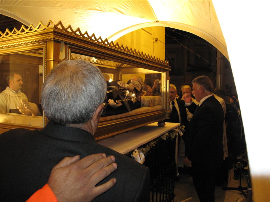 Il furgone con le pareti trasparenti è giunto a Noha, intorno alle ore 17:30, dopo avere attraversato mezza Italia, scortato dai Carabinieri, ed essersi offerto ai galatinesi passando da piazza Alighieri. Ha ricevuto il saluto della Complesso bandistico giovanile nohano. “È l’unica banda al mondo ad essere a lui intitolata –dice don Francesco Coluccia, parroco e motore dell'iniziativa- ed è la testimonianza di quanto i giovani di Noha siano legati a questo santo”.